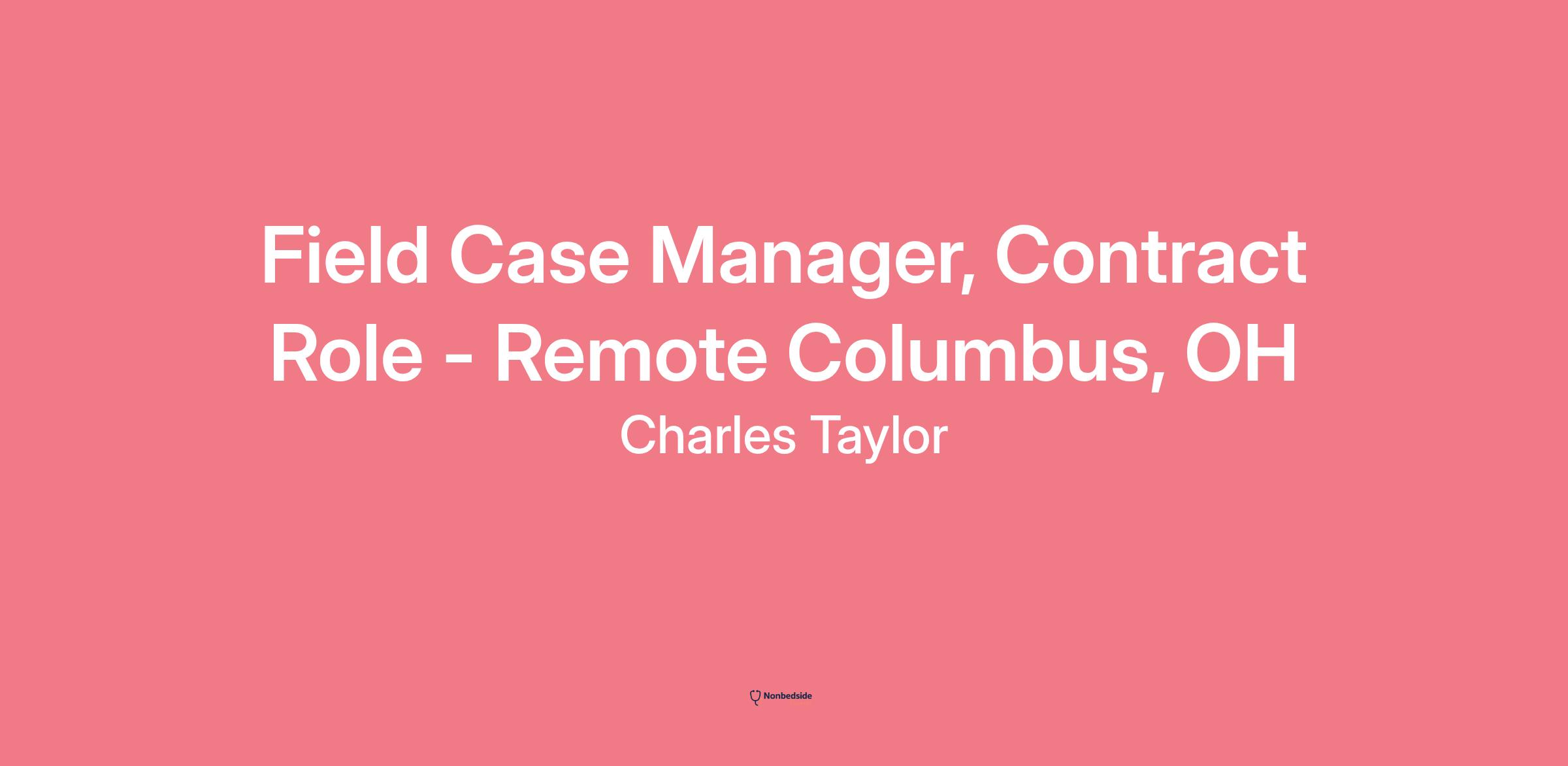 Field Case Manager, Contract Role - Remote Columbus, OH Charles Taylor is a highly successful global provider of professional services to the insurance industry. We are seeking an experienced Workers Compensation Field Case Manager to join our team in the Cincinnati-North Dayton-Columbus, OH area.
