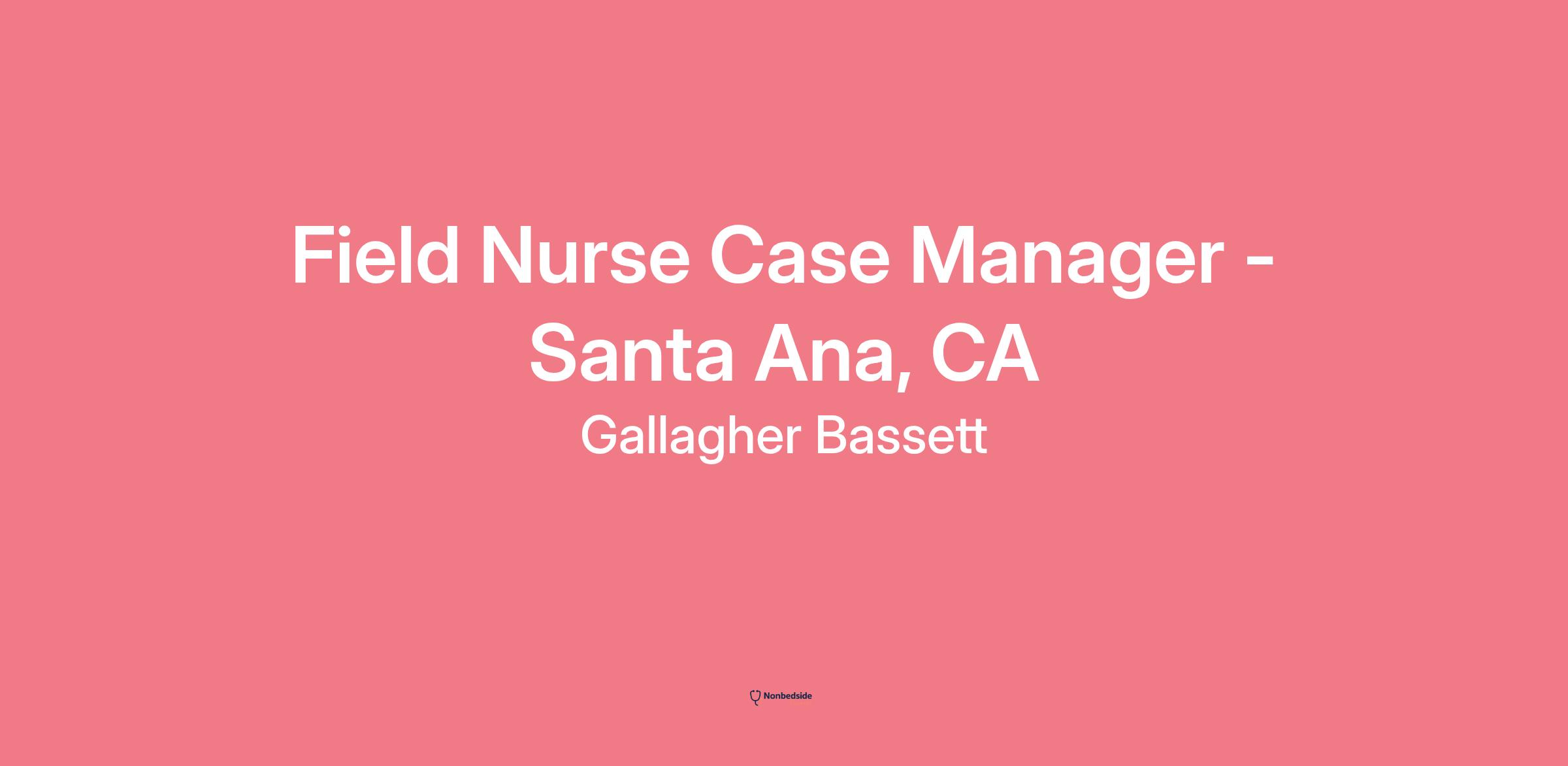 OverviewProvides medical management to workers compensation injured employees, performing case management through telephonic and in-person contact with injured workers and medical providers. Coordinates with employers and claims professionals to manage medical care in order to return injured employee to work. This position will cover the Santa Ana territory with a travel radius of up to 2 hours.