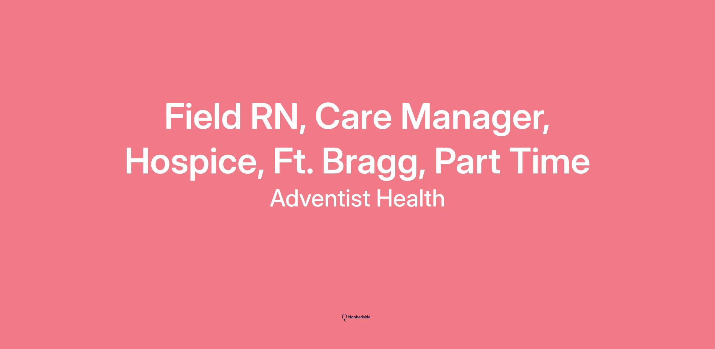 Field RN, Care Manager, Hospice, Ft. Bragg, Part Time Join to apply for the Field RN, Care Manager, Hospice, Ft. Bragg, Part Time role at Adventist Health