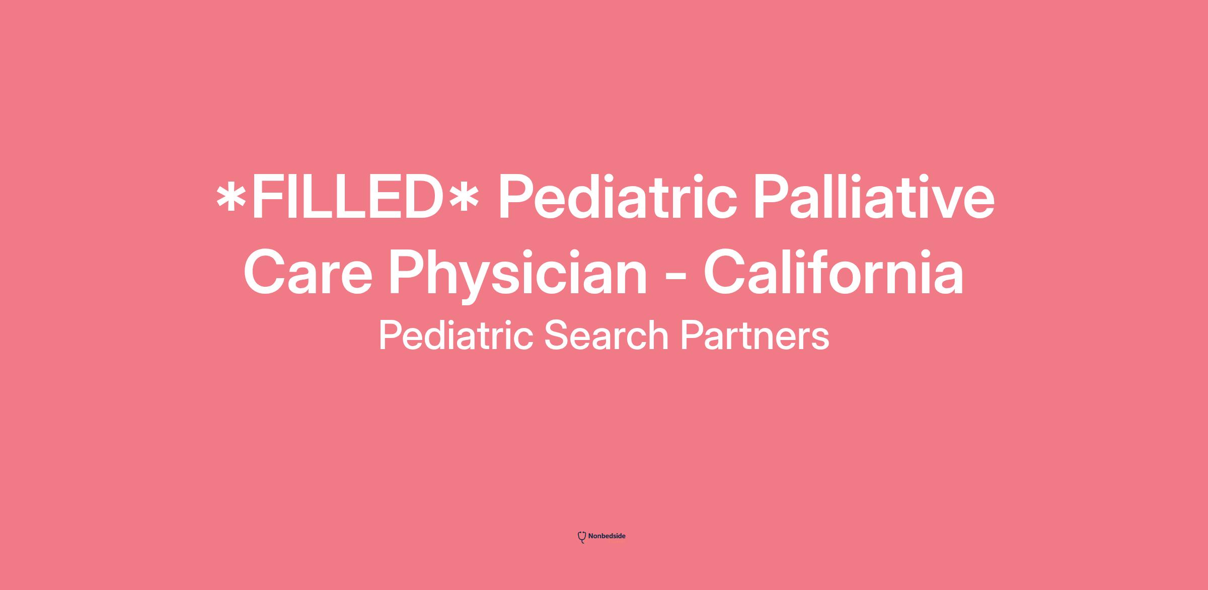 Overview We’re seeking a Pediatric Palliative Care Physician to join the growing Supportive Care program at CHOC Children’s Hospital in scenic Orange County, California. The CHOC supportive care services provides physical, emotional, social and spiritual care for patients and families focusing on improving quality of life, symptom management and if necessary, end-of-life care.