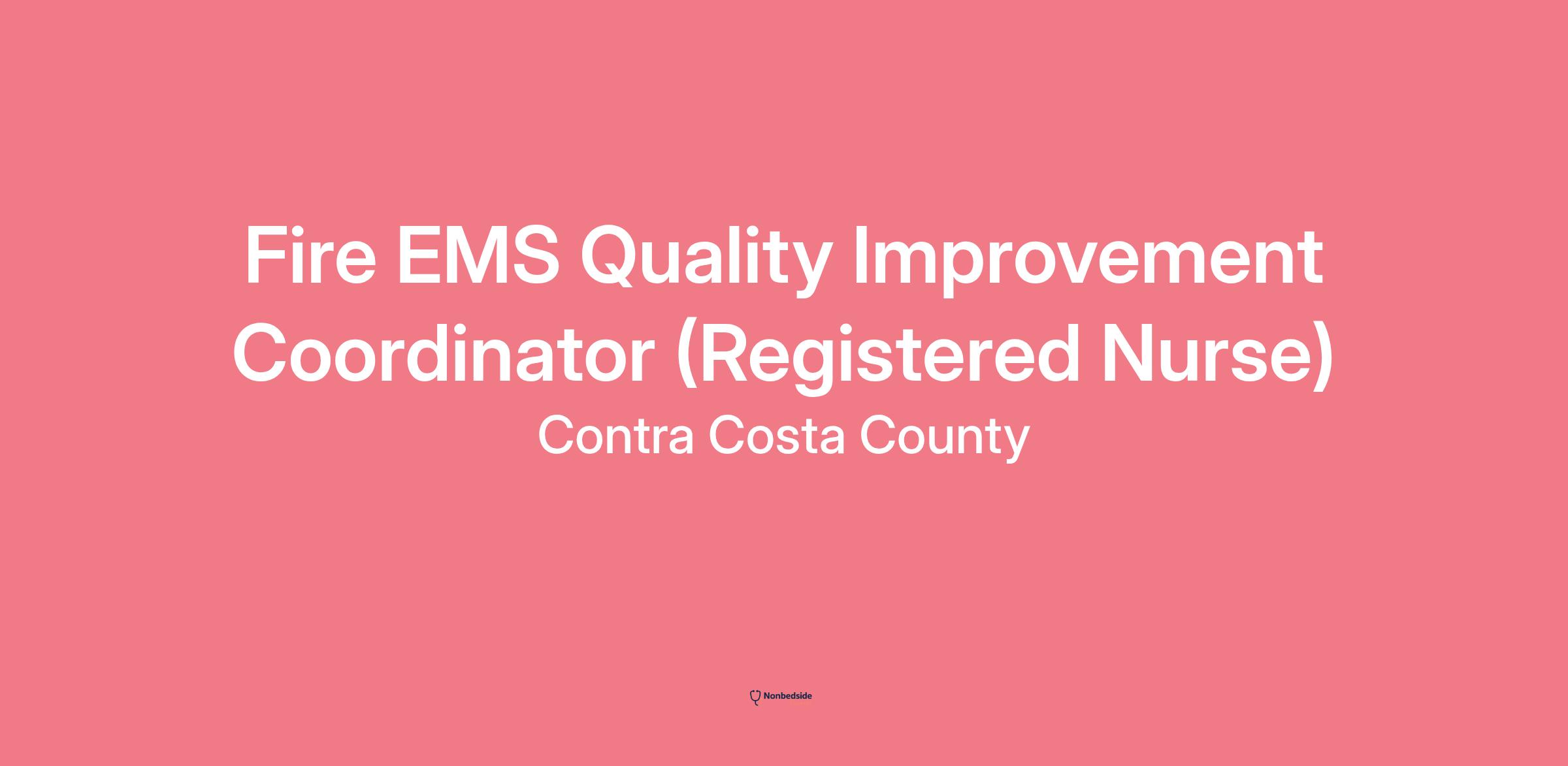 Overview Contra Costa County Fire Protection District is a recognized fire service leader that strives to become the premier fire organization that honors the past, recognizes the challenges of the present and will continue to raise the bar of excellence into the future. The Fire EMS Quality Improvement Coordinator plays a vital role in this mission, continuously working towards improvement of all aspects of the Emergency Medical Services (EMS) we provide to our valued communities.