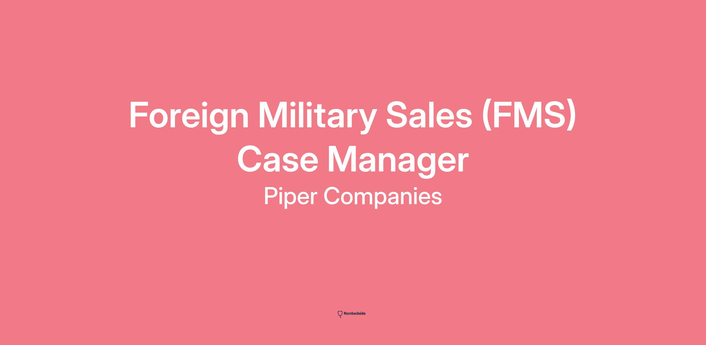 Piper Companies is looking for a Foreign Military Sales (FMS) Case Manager to join DoD consulting company supporting CECOM project and SAM-D program. This position is hybrid at APG (Aberdeen Proving Ground) with 2 remote days per week.