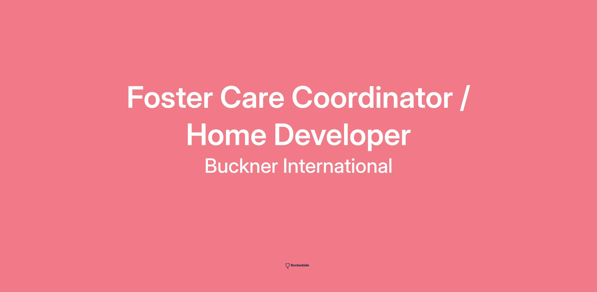 We are seeking a Foster Care Coordinator/Home Developer to join our Foster Care and Adoption Program. As a Foster Care Coordinator/Home Developer, you will Shine Hope as you are responsible for the coordination and implementation of recruiting families to become Buckner foster parents and promoting Buckner Foster Care services to the community. You will also provide an ongoing assessment of the prospective families. The role will also provide monitoring and development of the licensed foster parents. Join our team and shine hope in the lives of others!