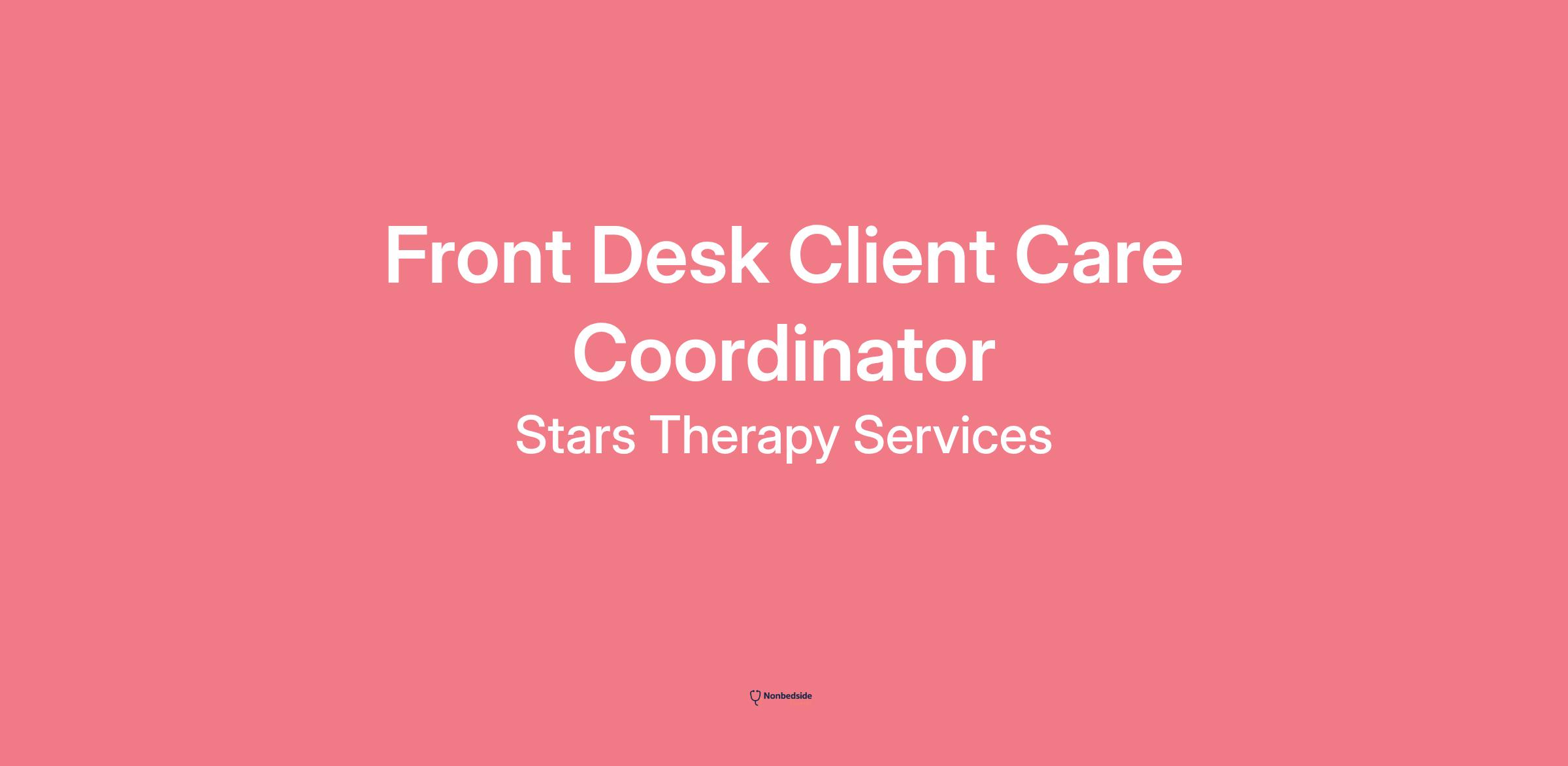 Stars Therapy Services is looking for a Client Care Coordinator to join our Team! Stars Therapy Services provides developmental assessments and direct therapy services to children ages 0-3 years old. As a Client Care Coordinator, you will be the first person a family meets on their journey through our program. Direct communication with families at our office in San Jose, over the phone, and coordinating with our therapists are included in daily tasks. Strong communication skills, sensitivity to family's needs, and strong organization skills are a must. Please see below for more a more specific description of the position's needs. We are looking for part time or full time: