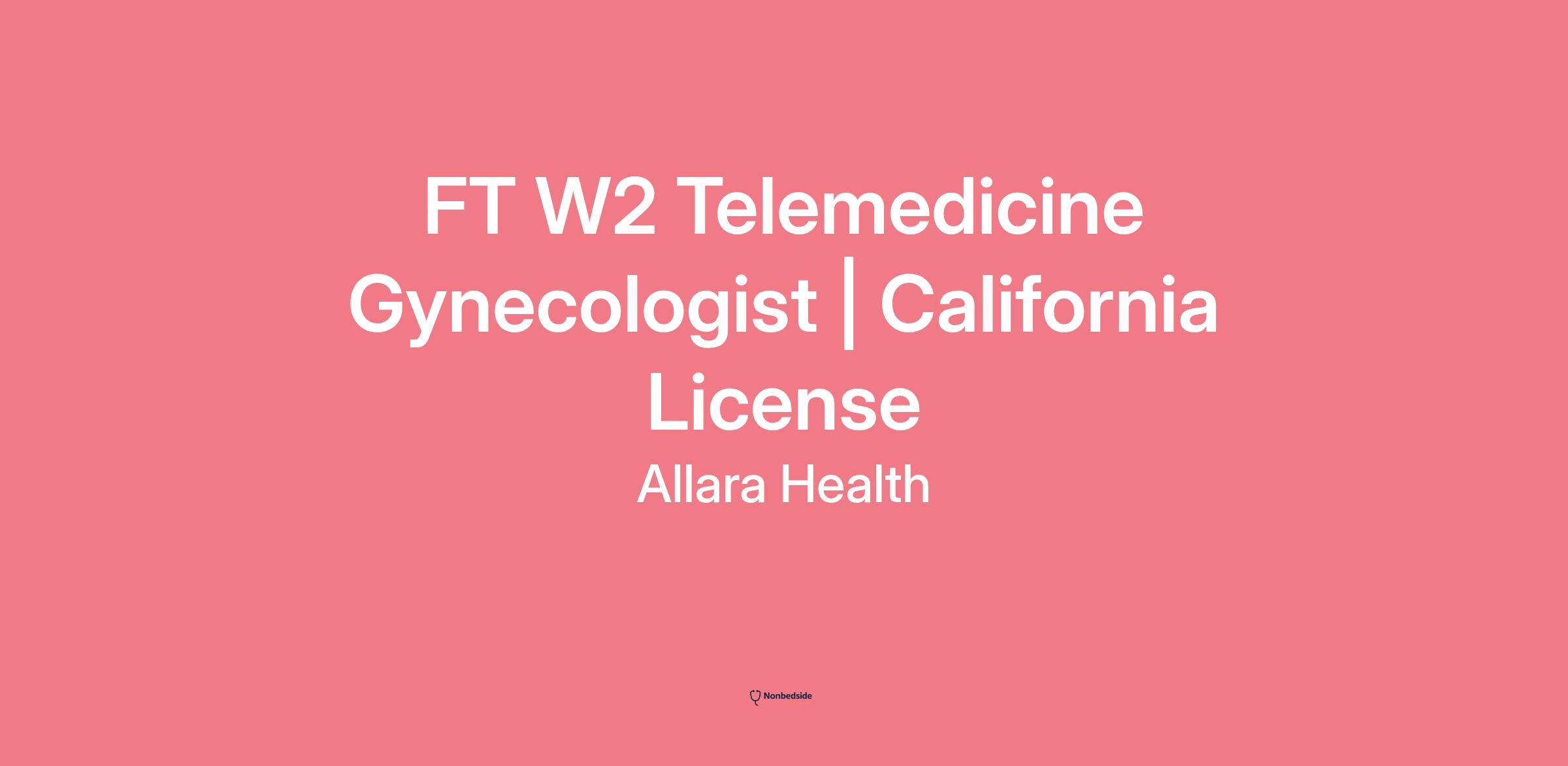 FT W2 Telemedicine Gynecologist | California License