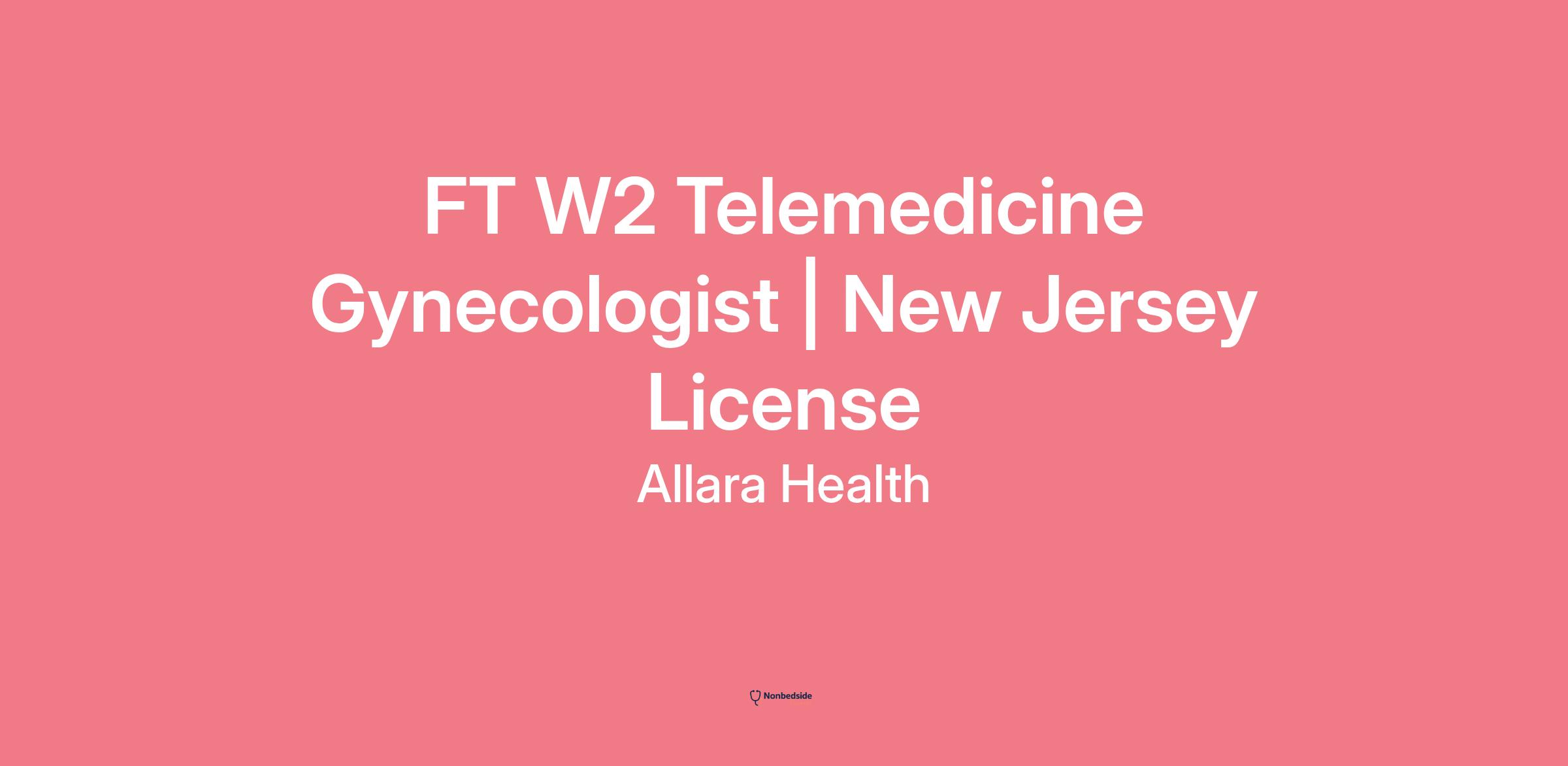 FT W2 Telemedicine Gynecologist | New Jersey License