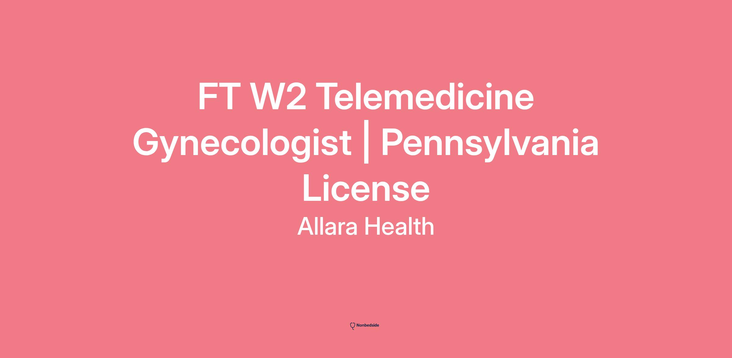 FT W2 Telemedicine Gynecologist | Pennsylvania License