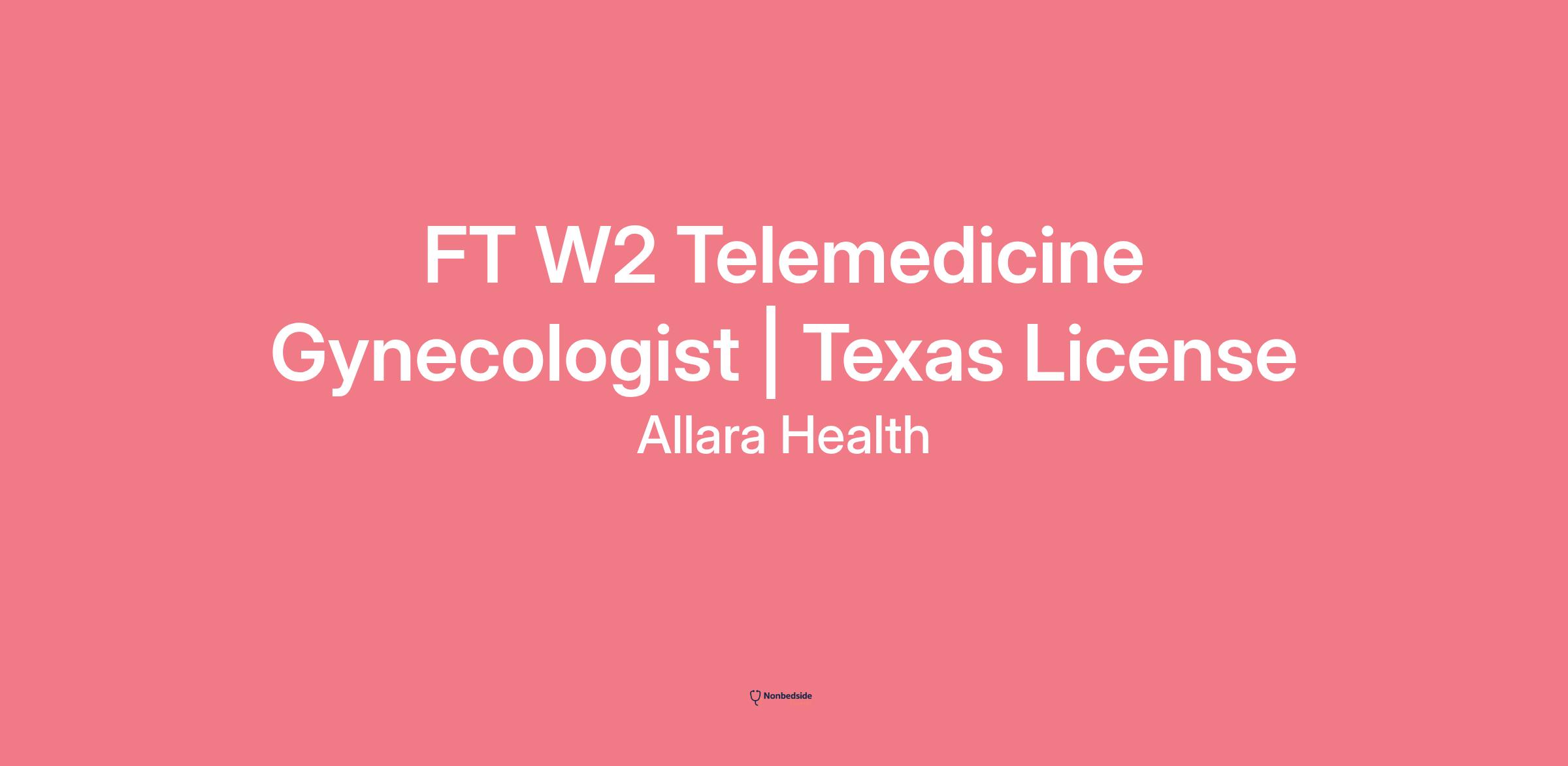 FT W2 Telemedicine Gynecologist | Texas License