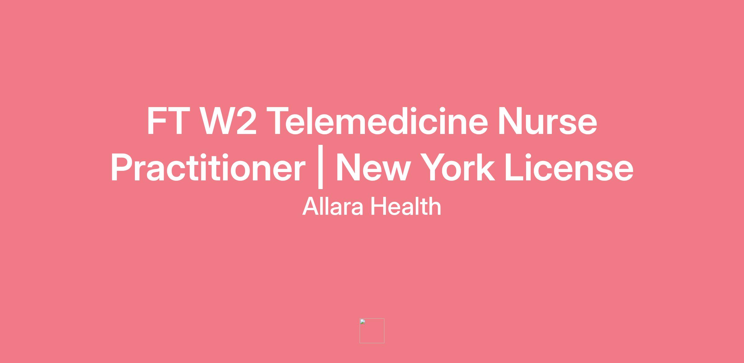 FT W2 Telemedicine Nurse Practitioner | New York License