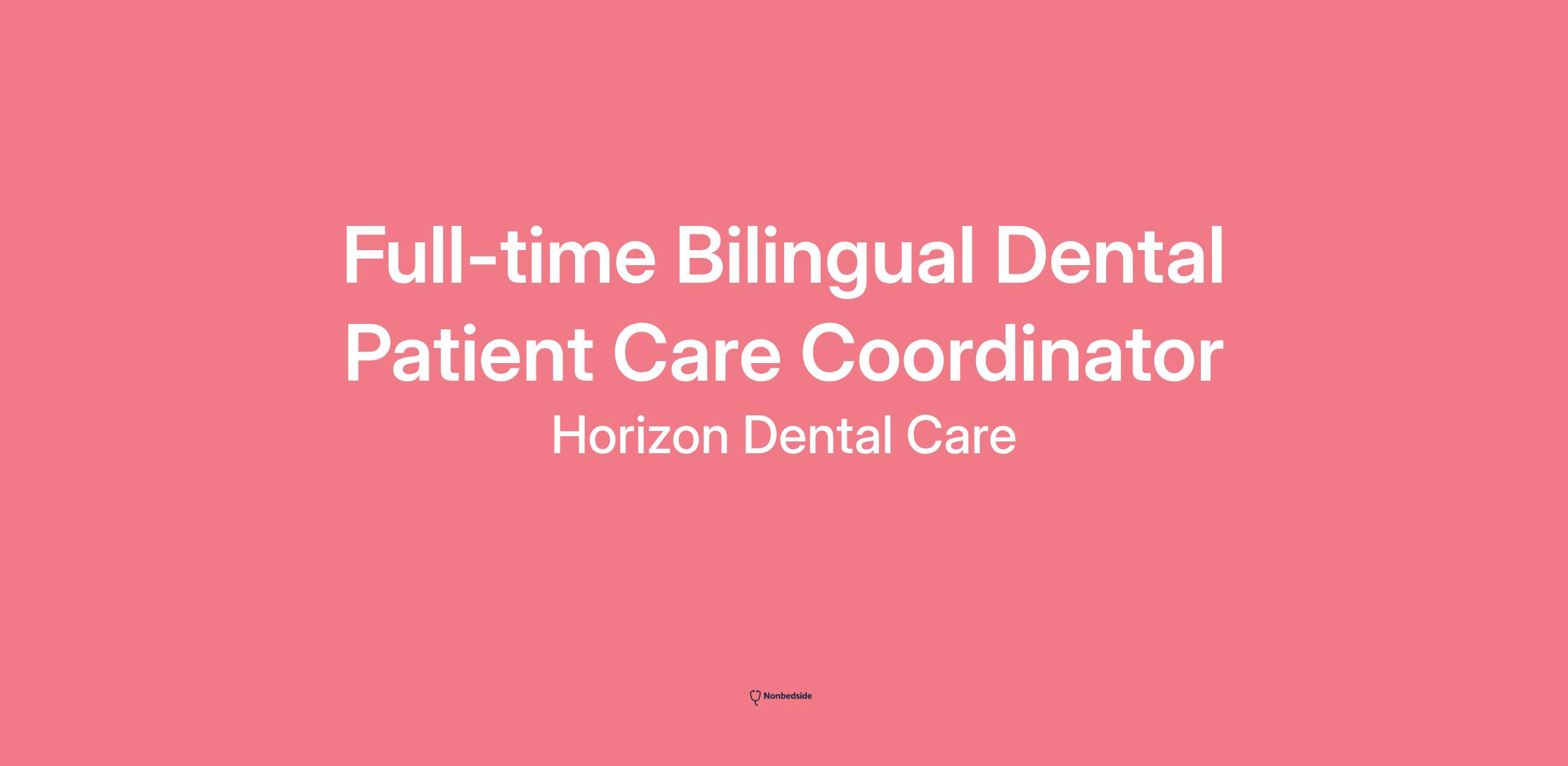 Horizon Dental Care is seeking a full-time BILINGUAL front desk receptionist and patient care coordinator. We are looking for a team member who feels passionate about the field of dentistry and believes that good oral health is the gateway to one’s overall wellbeing. This individual should possess exceptional customer service skills, organizational skills, resourcefulness, and a strong desire to help people. They will need to juggle a variety of responsibilities, all while making sure that everyone who walks through the front door feels welcomed and comfortable. The perfect candidate for this position is self-sufficient, has exceptional interpersonal communication skills, and is capable of identifying the goals of the practice and aligning and adjusting work focus daily to meet and exceed expectations.