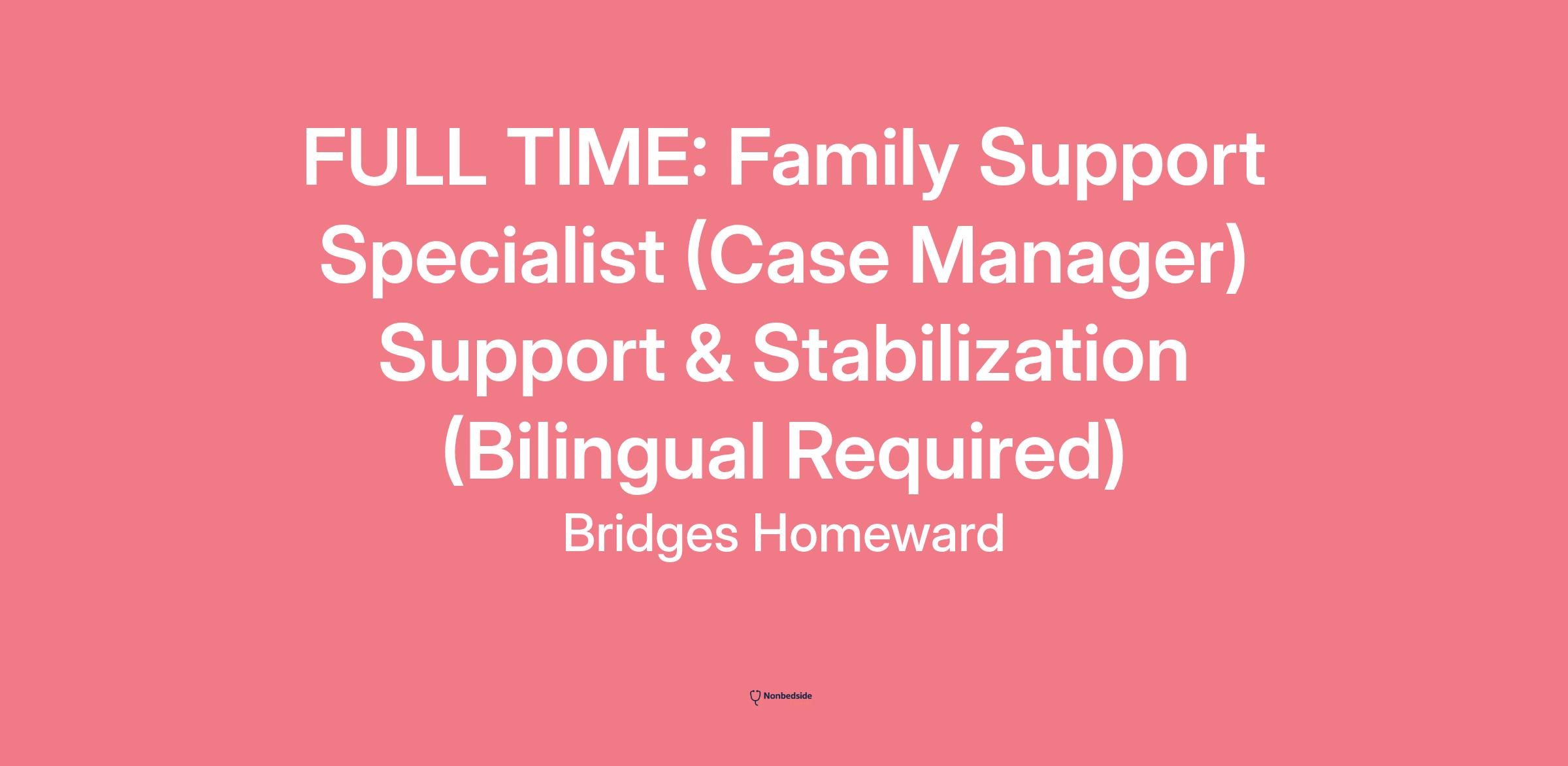Join to apply for the FULL TIME: Family Support Specialist (Case Manager) Support & Stabilization (Bilingual Required) role at Bridges Homeward