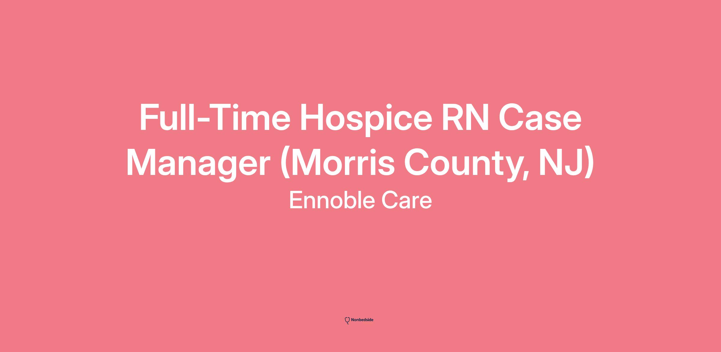 Ennoble Care is hiring for a full-time Hospice Registered Nurse Case Manager for our hospice patients who reside within or near Morris County, NJ. As a member of the interdisciplinary team, the RN Case Manager works under the general direction of the Director of Nursing and the interdisciplinary group to provide skilled nursing assessments, planning, and care to maximize the comfort and health of both patients and their loved ones/caregivers.