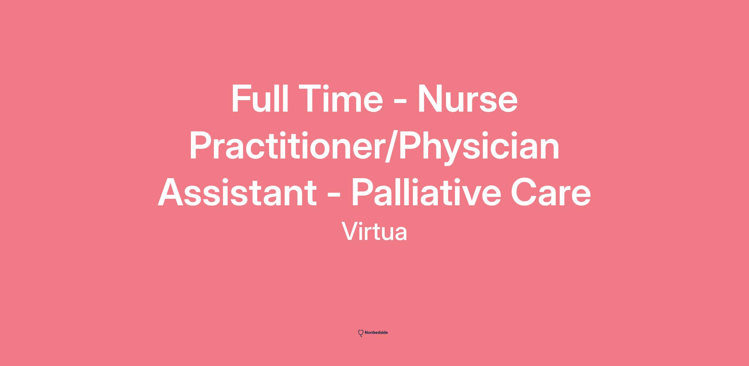 Virtua Medical Group is seeking a compassionate and dedicated Nurse Practitioner or Physician Assistant to join our Palliative Care Team .