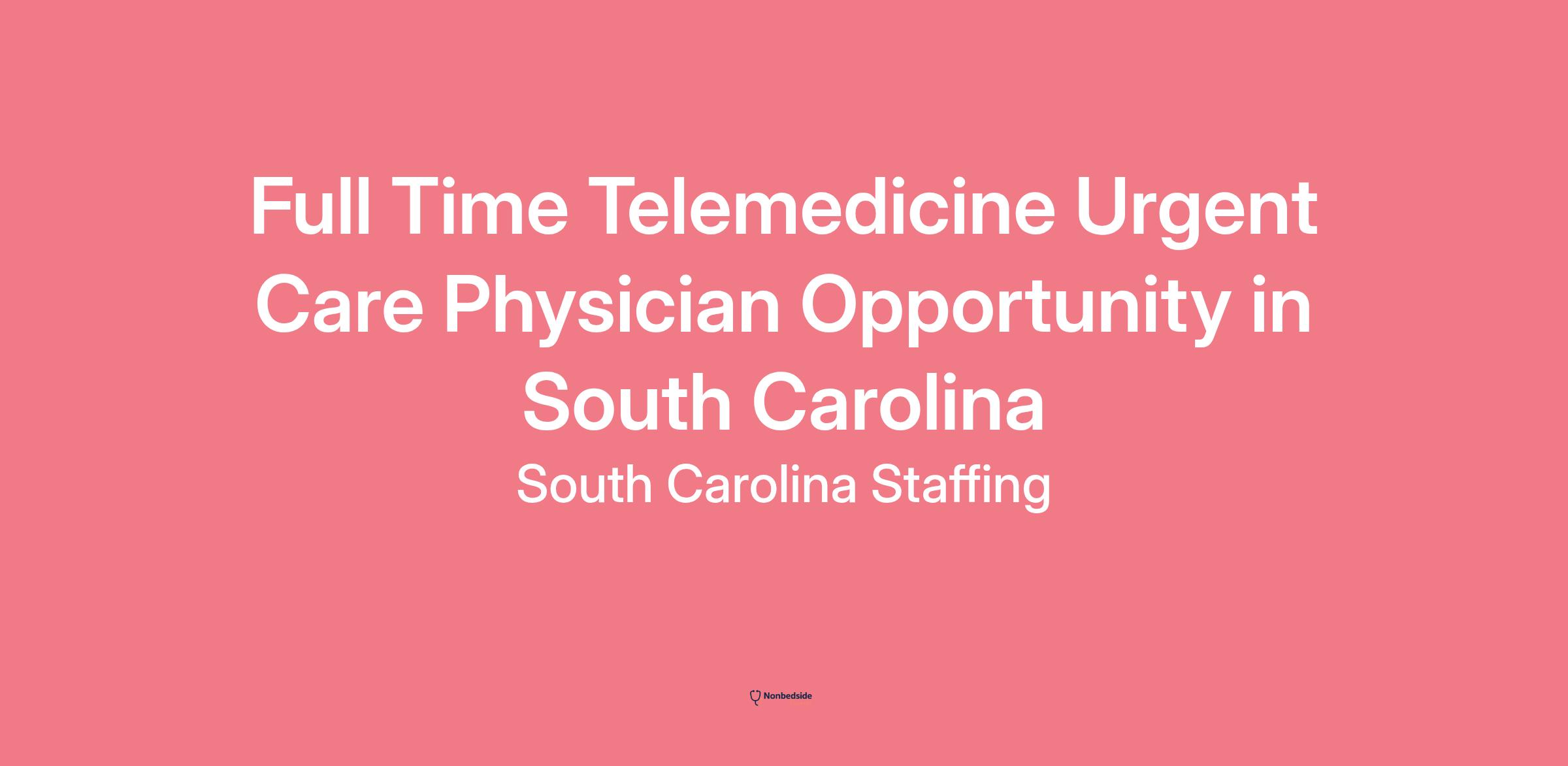 CareNow Urgent Care is seeking a board-certified physician to join our telemedicine team for South Carolina. The position requires the candidate to have a state of residence in South Carolina, provided they have to go in-clinic in an emergent situation. Must be willing to obtain multiple state licenses.