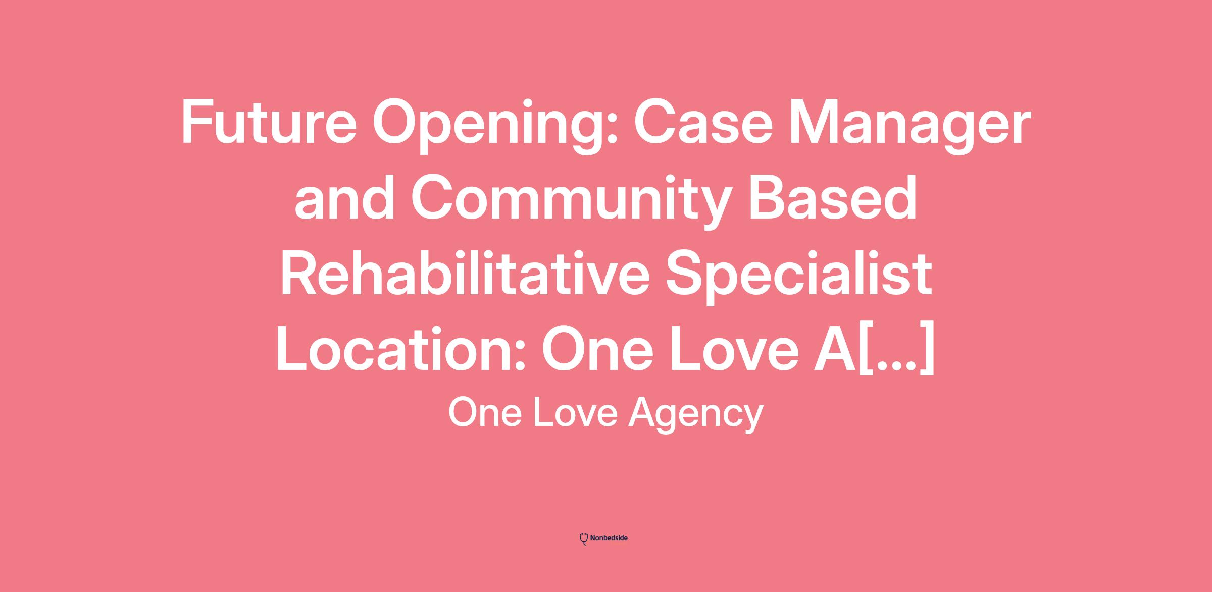 Position: Case Manager (CM) and Community Based Rehabilitative Specialist (CBRS)