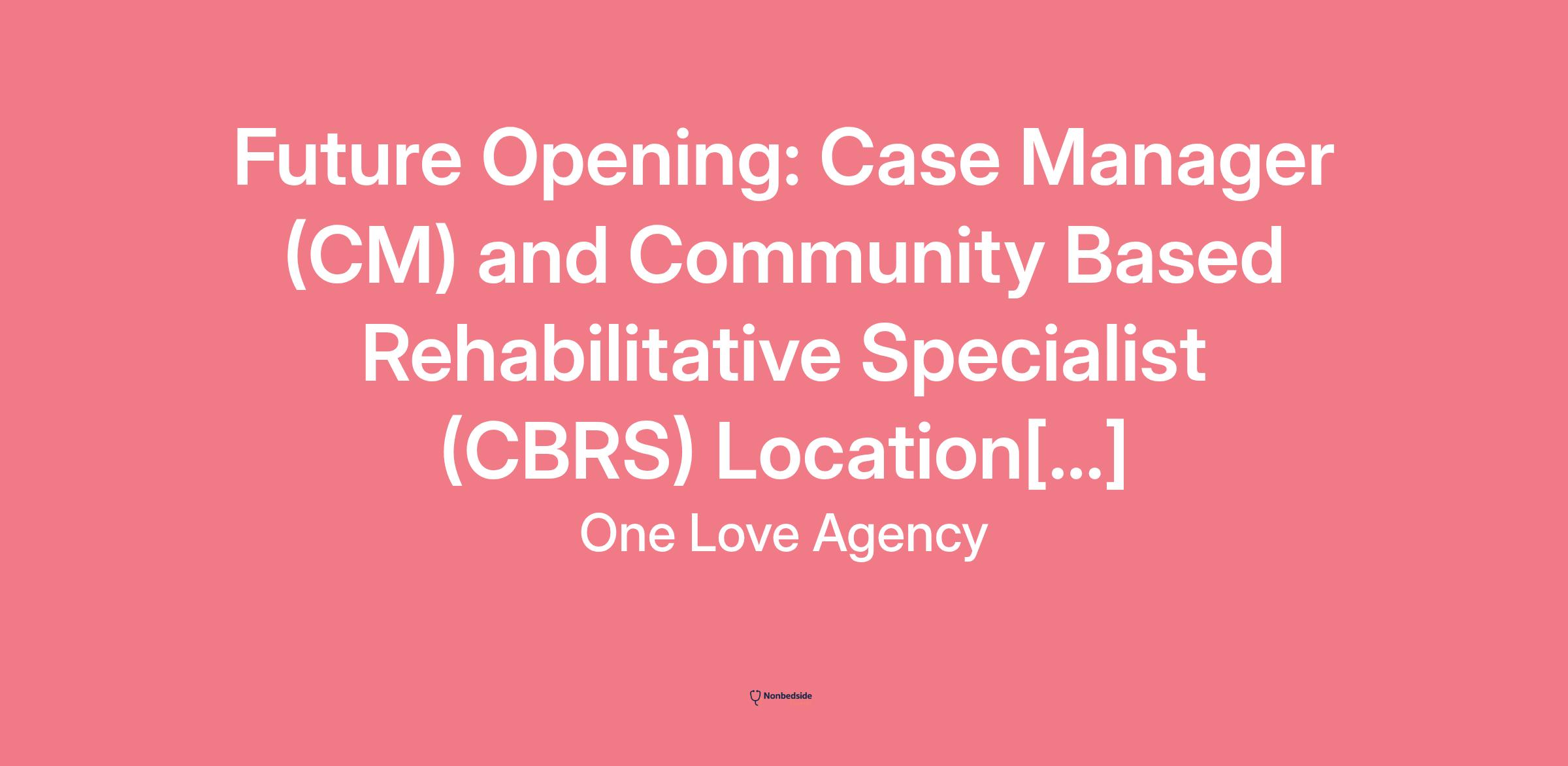 Position: Case Manager (CM) and Community Based Rehabilitative Specialist (CBRS)