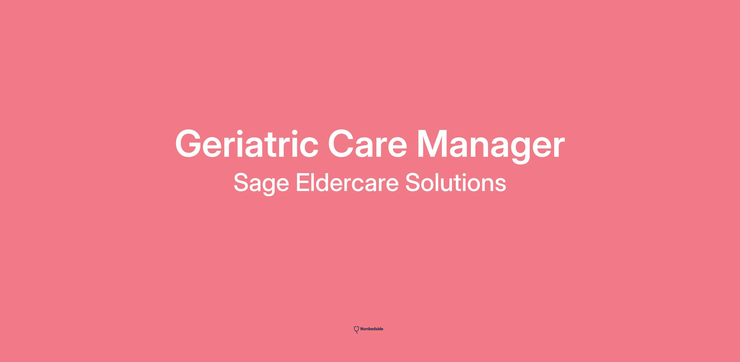 Sage Eldercare Solutions is an equal-opportunity employer. We celebrate diversity and are committed to creating an inclusive environment for all employees.