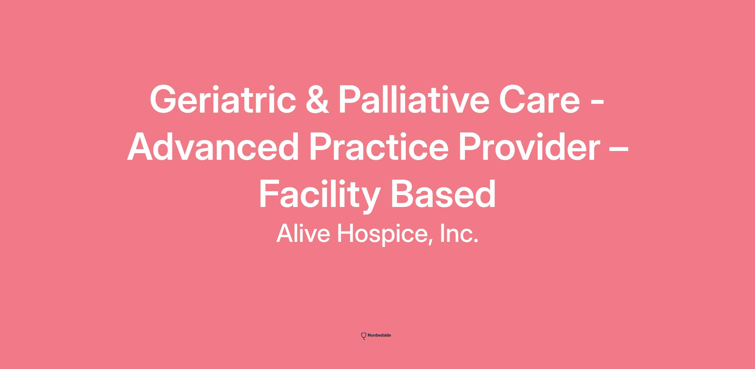 Are you a compassionate and dedicated Advanced Practice Provider with a passion for providing exceptional care to geriatric and palliative care patients? We are seeking a skilled provider to join our team and serve as a vital partner in coordinating comprehensive care in our community. If you’re ready to bring your clinical expertise and caring spirit to a team that truly makes a difference, we can’t wait to speak with you! Summary