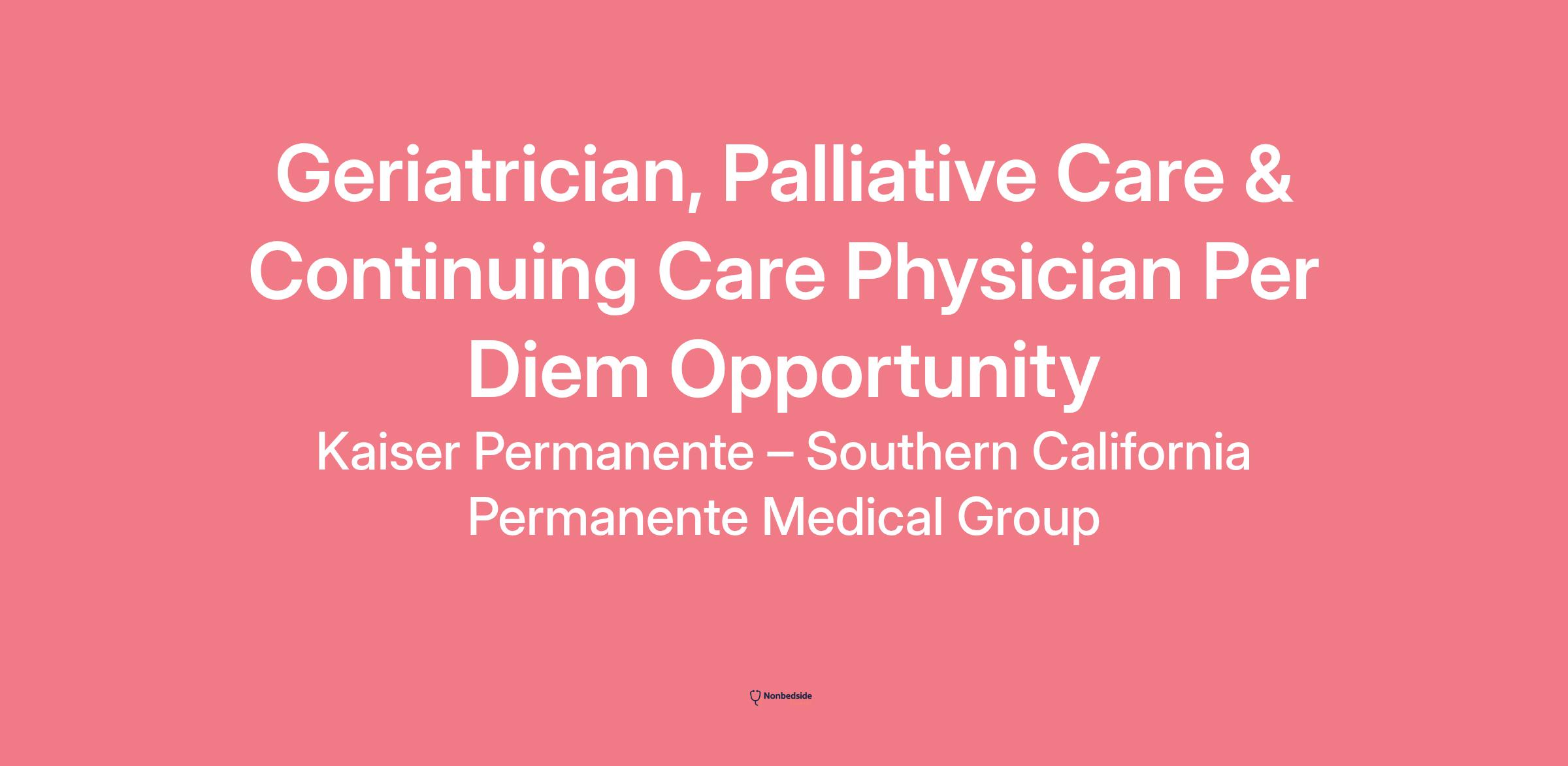 For additional information about this opportunity, please visit our website at southerncalifornia.permanente.org or call 877-608-0044.