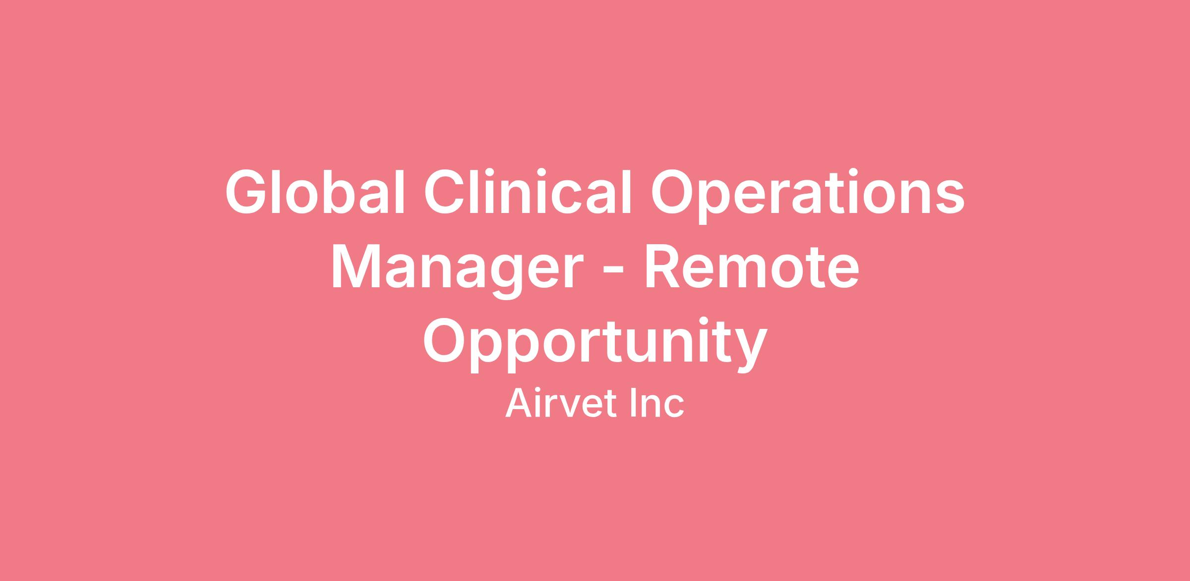 Global Clinical Operations Manager - Remote Opportunity