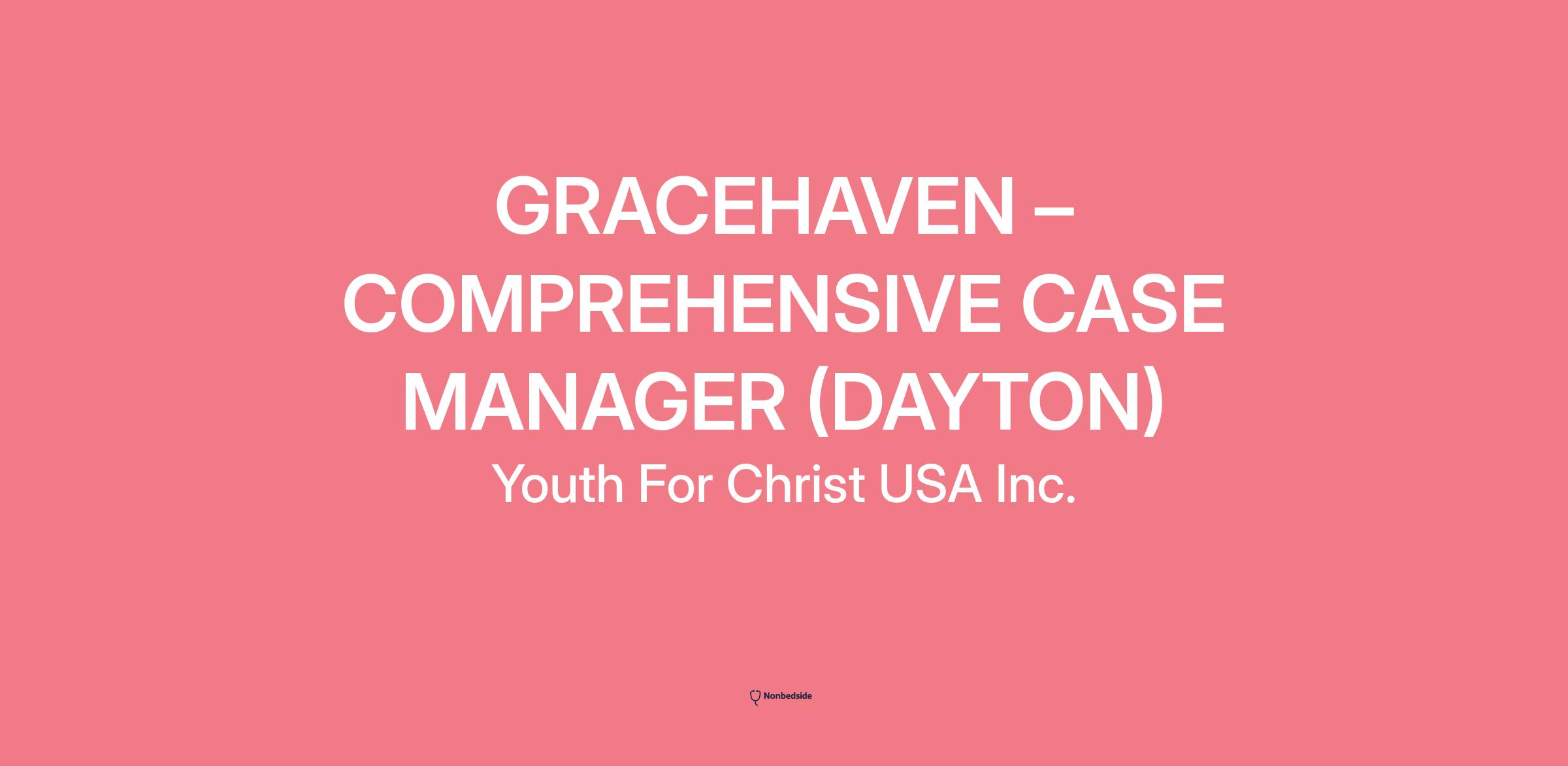 GRACEHAVEN – COMPREHENSIVE CASE MANAGER (DAYTON) Join to apply for the GRACEHAVEN – COMPREHENSIVE CASE MANAGER (DAYTON) role at Youth For Christ USA Inc.