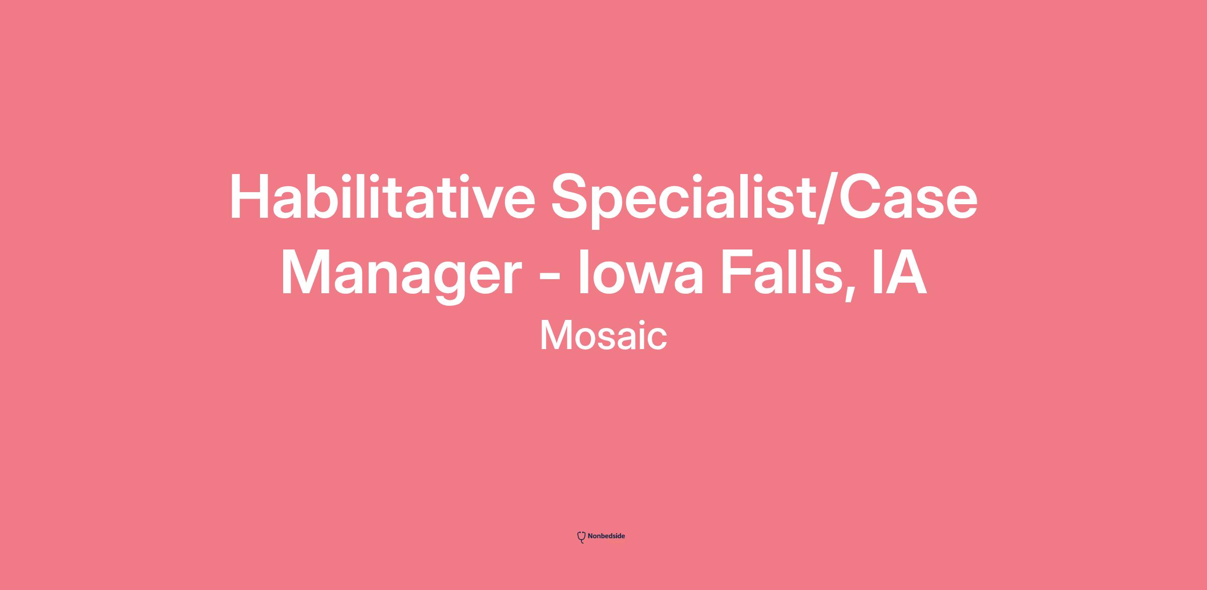 We're looking for a Habilitative Specialist/Case Manager to join our team! As a Habilitative Specialist/Case Manager, you'll coordinate services to help the people we serve keep, learn, or improve important daily living skills. Your responsibilities will include training staff in behavior modification techniques and to assist with developing new programs.