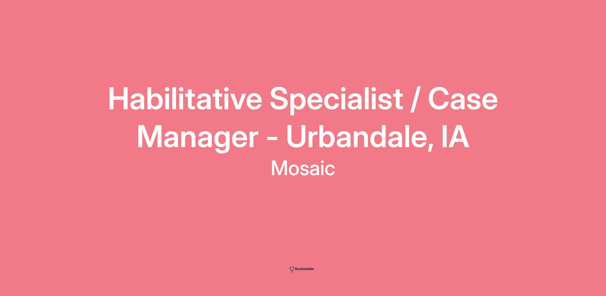 Overview Join the Fun as Our Habilitative Specialist/Case Manager! Ready to be a real-life superhero? Mosaic is looking for a Habilitative Specialist/Case Manager to jump in and coordinate our awesome services!