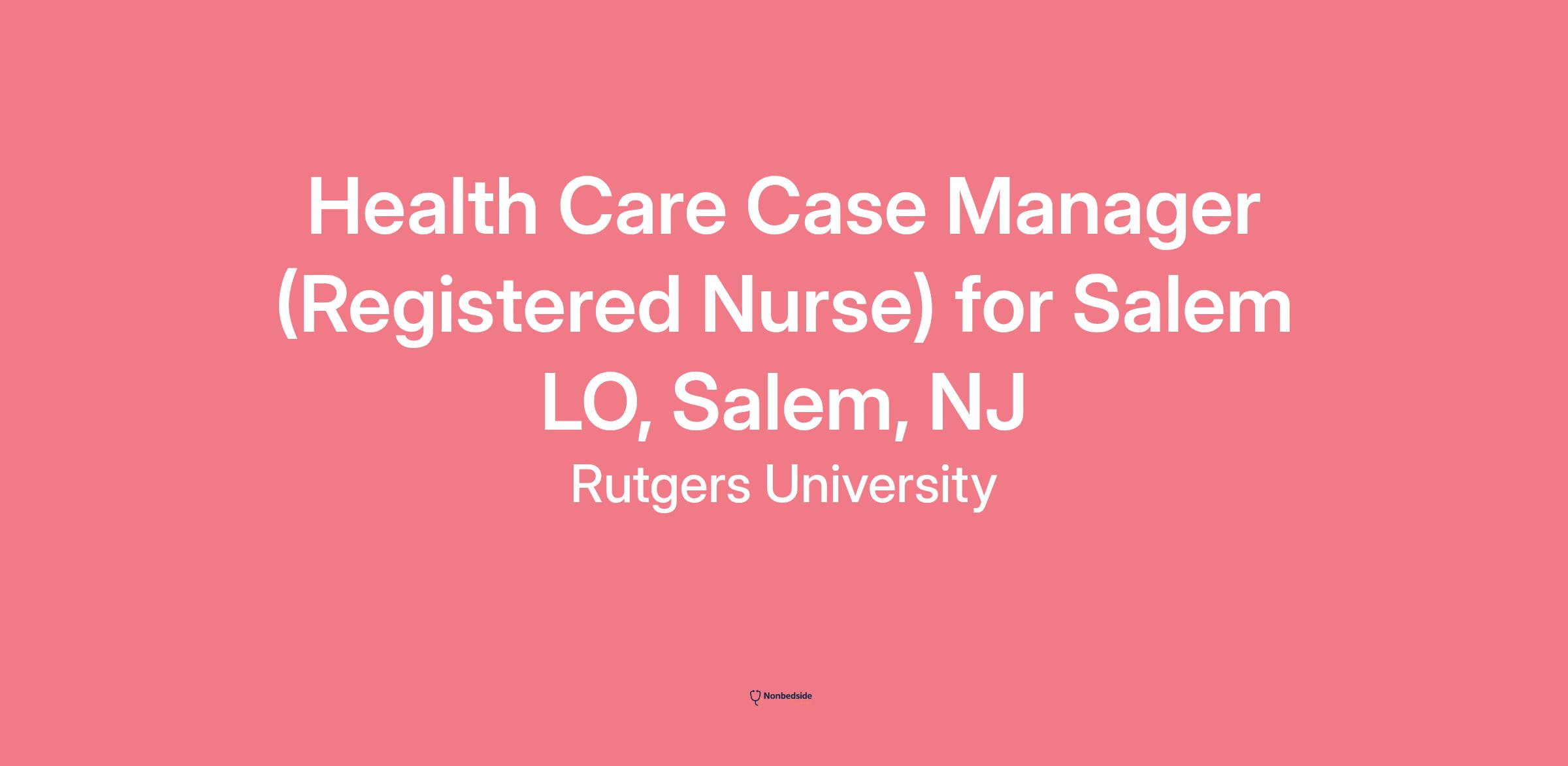 Rutgers, The State University of New Jersey, is seeking a Health Care Case Manager for Salem for the Child Health Program within the School of Nursing. The Heath Care Case Manager (HCCM) functions to support the Department of Children and Families (DCF)/Child Protection and Permanency (CP&P) in meeting the health care and protection needs of children in out-of-home placement, in collaboration with other staff of the Child Health Unit in that local office.