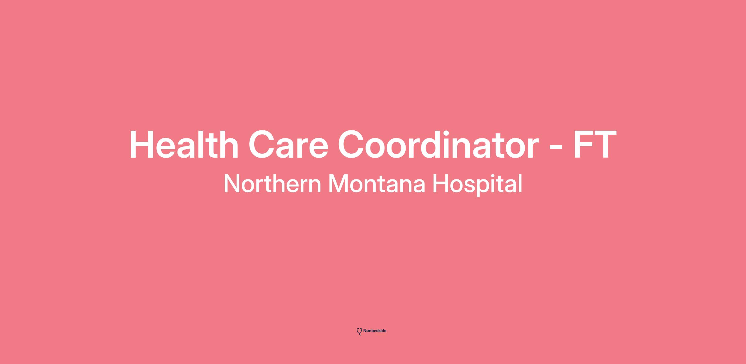 About the role The Health Care Coordinators primary responsibility is to assist in the overall management of Northern Montana Hospital (NMH) patients, particularly those with chronic disease. Demonstrates innovation and an acceptance of new ideas and concepts. Shows the ability to resolve conflicts with clients and overcome their objections about their health and behaviors. Possesses above average optimism and the ability to motivate clients to make vital changes in their lives. Exhibits effective communication skills for working with clients, their families and their other healthcare providers. Demonstrates a commitment to clients and a willingness to go above and beyond normal responsibilities to provide the best care possible. Shows self-confidence and the ability to express views that may not be popular or shared by clients. Perform population health, care management, and patient-self management support and clinical documentation functions. Provide support for patient and family centered continuity of care services for patients undergoing transition of care. Assist with providing patient and families with optimal linkage to community resources. Work collaboratively to improve quality of patient care through facilitating the efficient use of resources. Acts as an advocate for individual’s health care needs and assists in minimizing the fragmentation of health delivery systems.