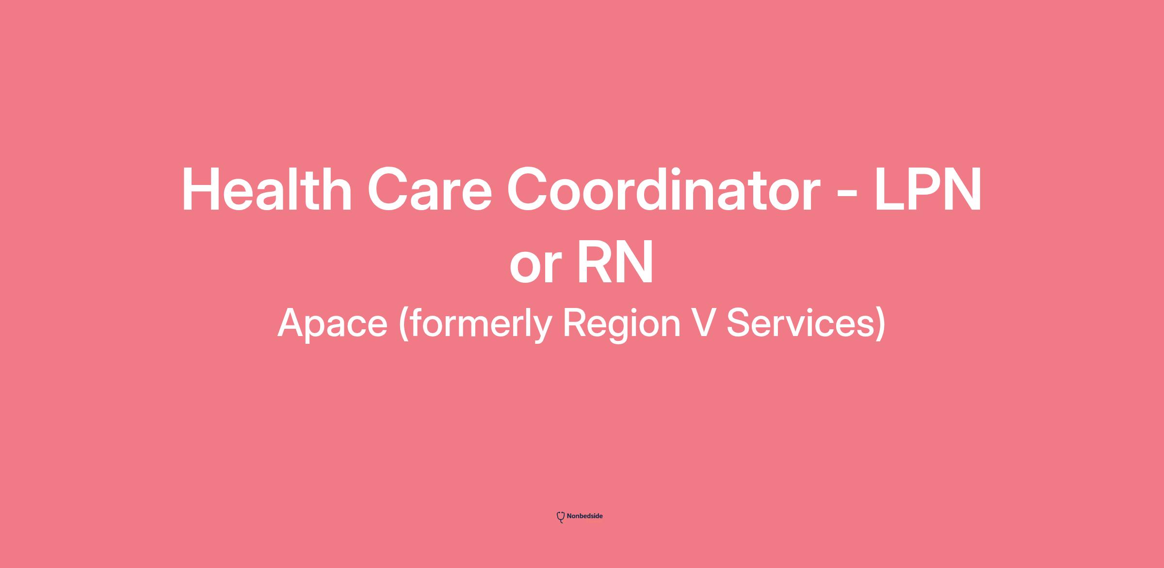 Acts As a Member Of The Nursing Education Team Health Care Coordinator acts as a member of the Nursing Education team, with regular attendance, active participation in initiatives to achieve the strategic goals of the Nursing Education department and to support the mission of Apace and the individuals supported.