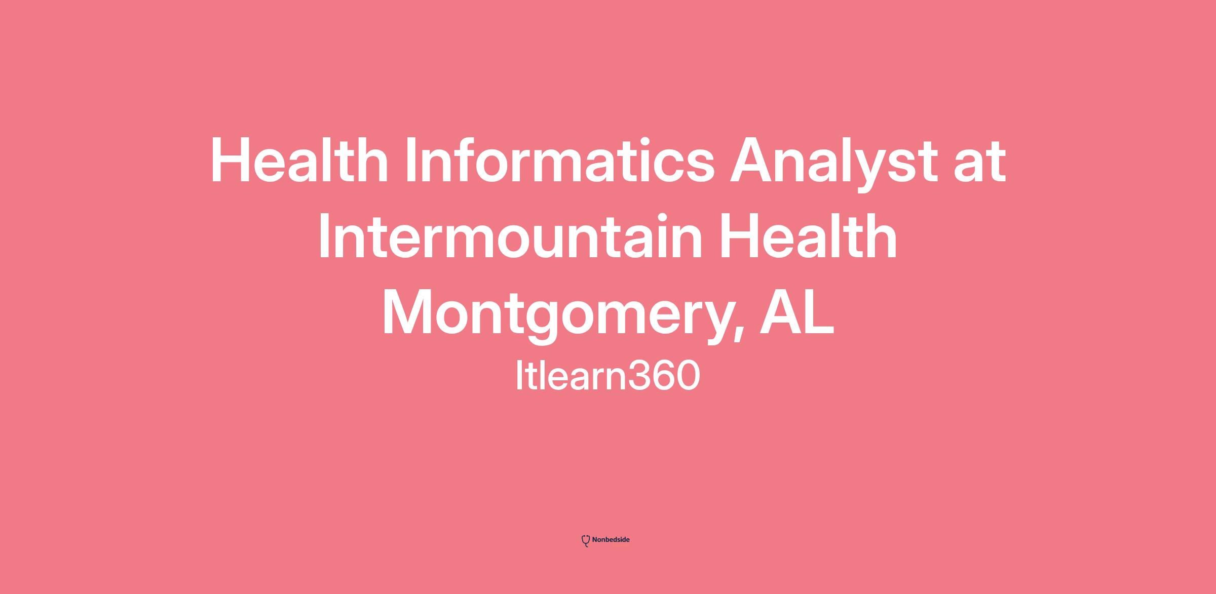 Health Informatics Analyst Job at Intermountain Health, Montgomery, AL Intermountain Health