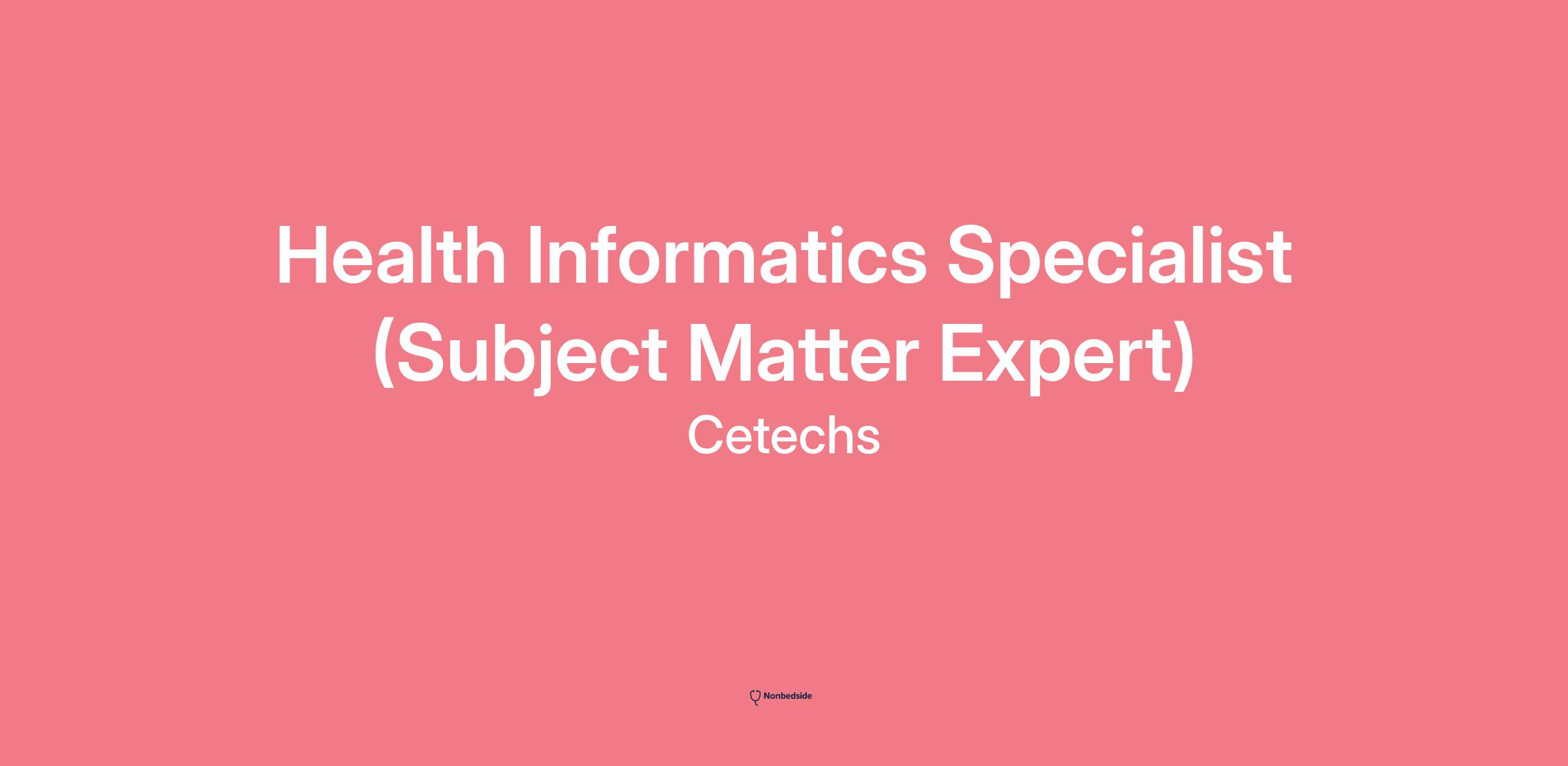 Position Summary Cetehcs is seeking Health Informatics Specialist (SME) to lead advanced health information management and analytics initiatives within the Department of Veterans Affairs (VA). This role is responsible for the design, implementation, and optimization of health information technology systems, ensuring data integrity, security, and accessibility to support patient care, administration, research, and compliance efforts throughout VA facilities.