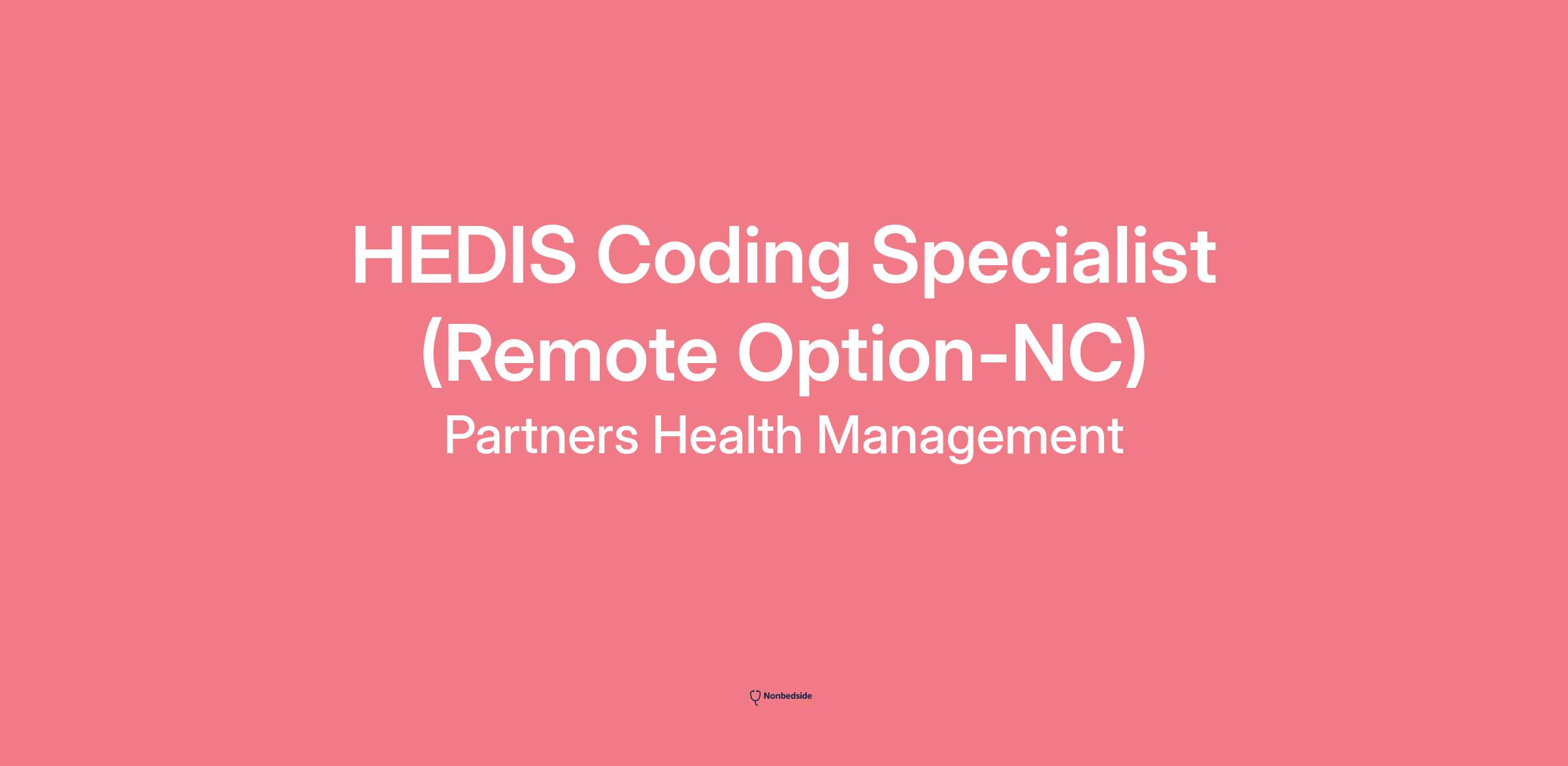 Join to apply for the HEDIS Coding Specialist (Remote Option-NC) role at Partners Health Management.
