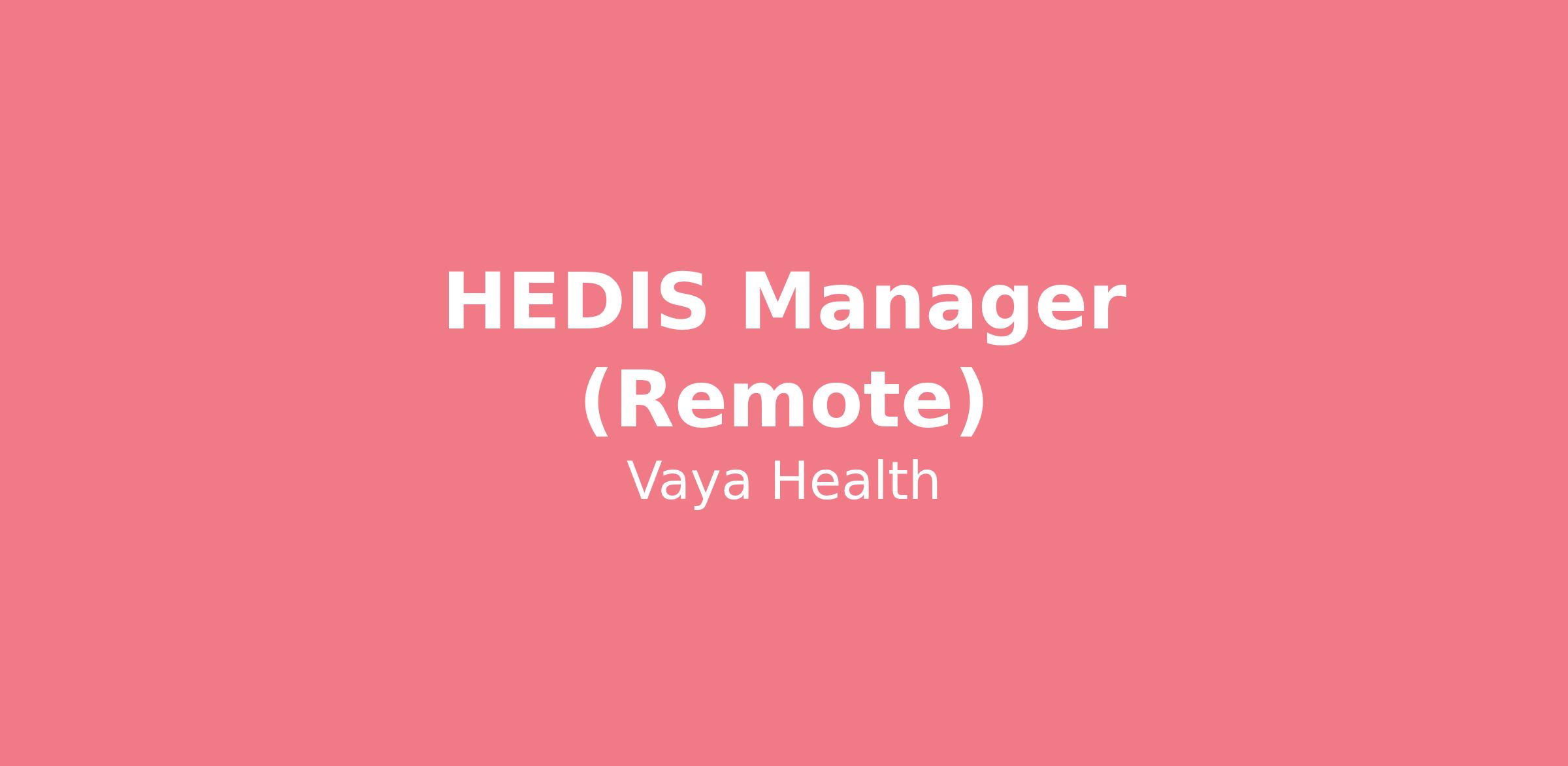 This position is responsible for the end-to-end execution of the annual Healthcare Effectiveness Data and Information Set (HEDIS) and Consumer Assessment of Healthcare Providers and Systems (CAHPS) cycle. This role ensures Vaya meets contractual requirements and regulatory standards set by the National Committee for Quality Assurance (NCQA). This role is responsible for ensuring the accuracy of data collection, timely reporting, and ongoing improvement of quality performance measures. Additionally, the HEDIS manager serves as the HEDIS subject matter expert, leads cross-functional teams, and collaborates with internal and external stakeholders to advance initiatives that improve member outcomes.