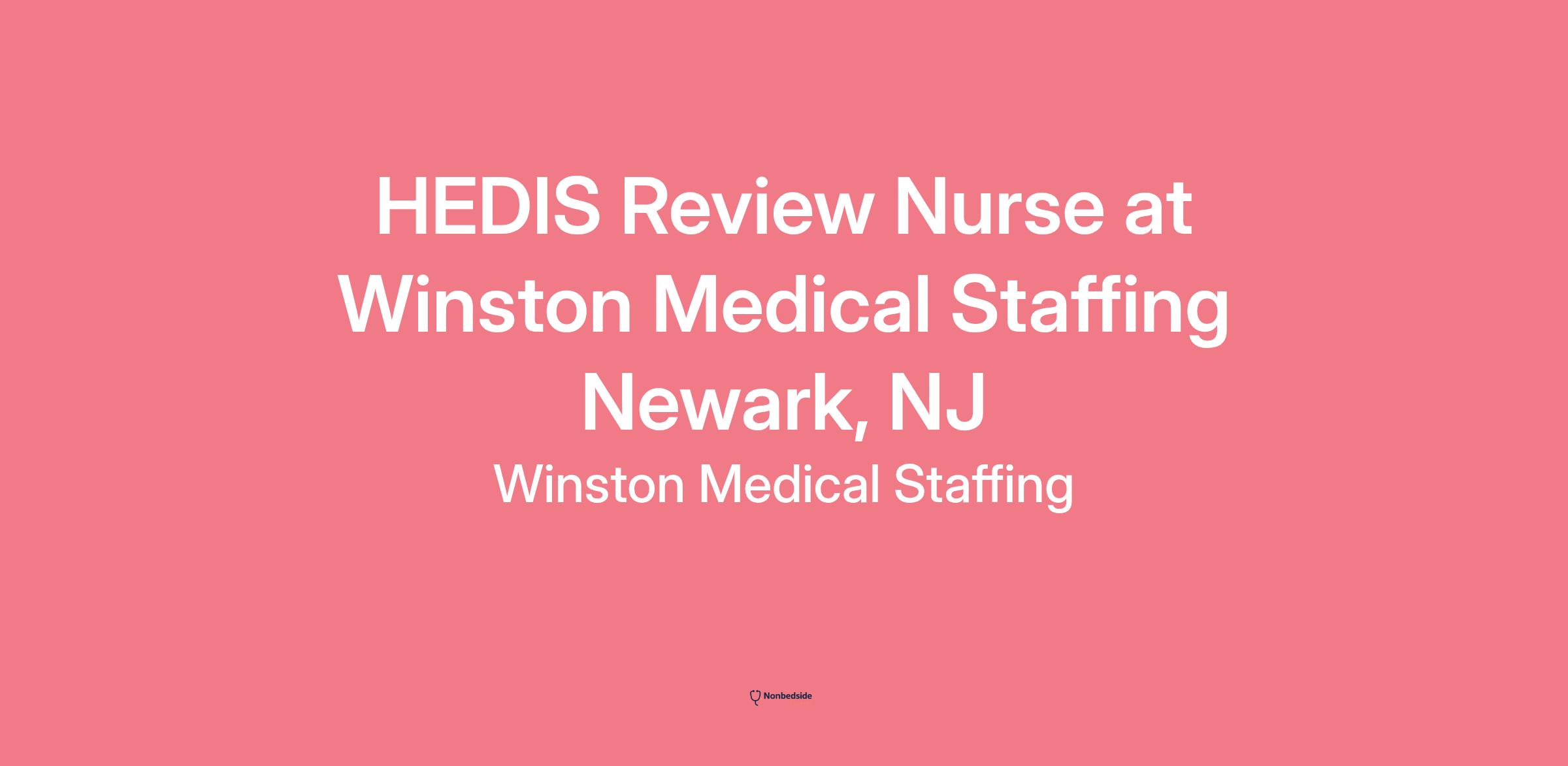 HEDIS Review Nurse job at Winston Medical Staffing. Newark, NJ.