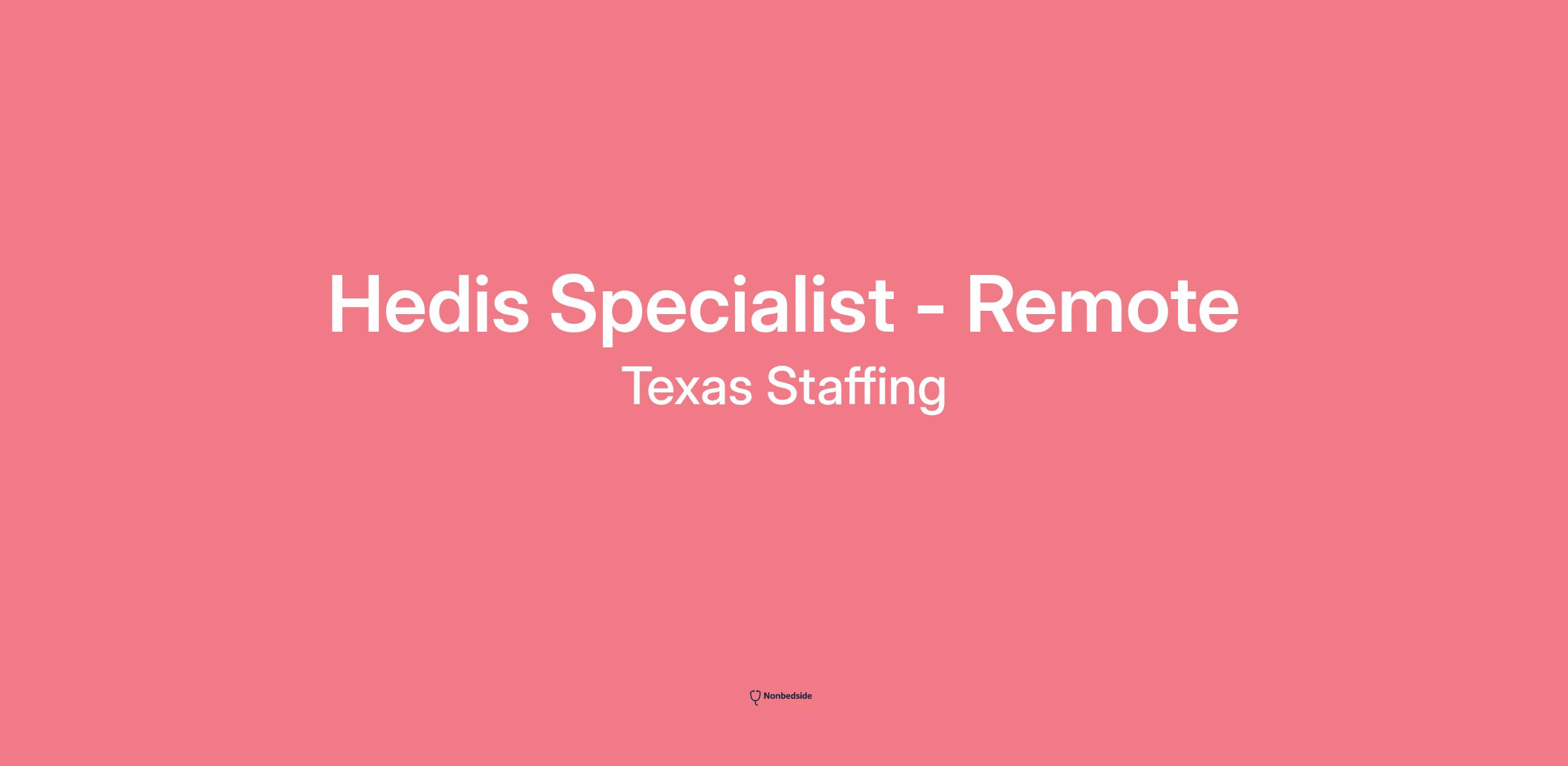 Qualification: 2+ years of HEDIS work is mandatory. Record review for HEDIS (Providers Outreach) experience is mandatory.