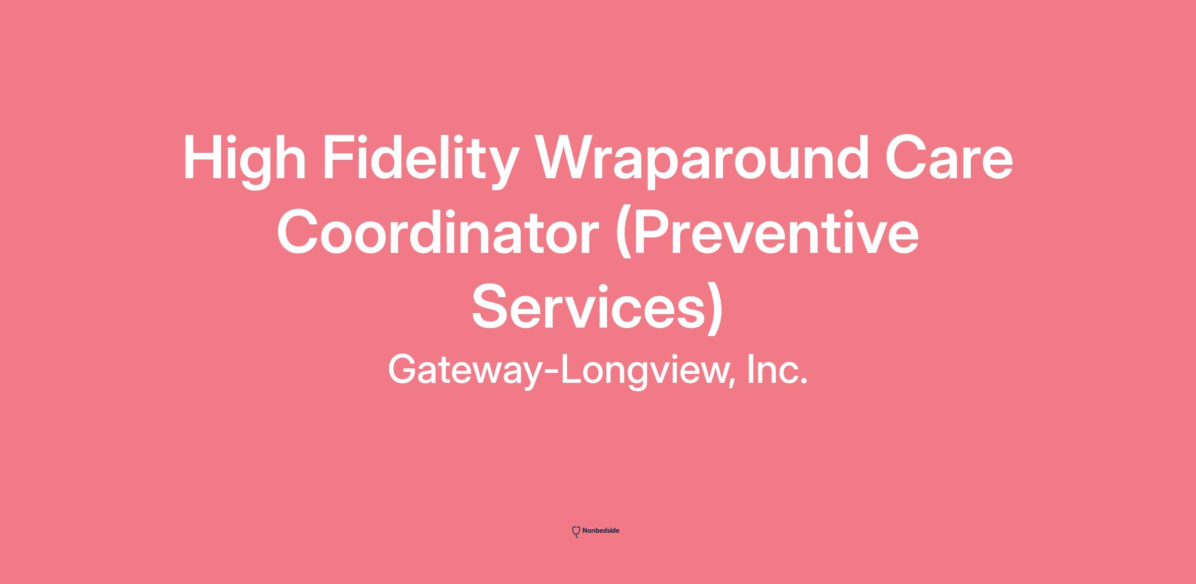 Position: High Fidelity Wraparound Care Coordinator (Preventive Services)