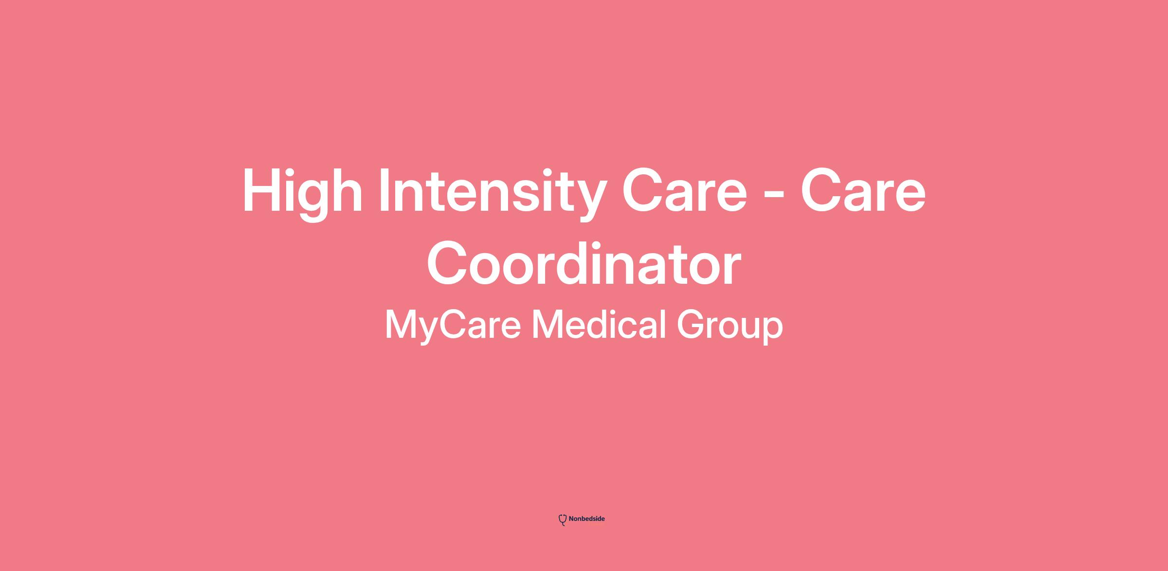 Job Summary: At MyCare Medical, we strive to make sure our patients receive the highest quality, most cost-effective care. We have a dedicated High-Intensity Care (HIC) team supporting our patients, giving them the time that they need to care for each patient and ensure a comfortable and patient-centric experience. The High Intensity Care - Care Coordinator (CC), under medical supervision, assists the High Intensity Care (HIC) Provider in the delivery of health care services.