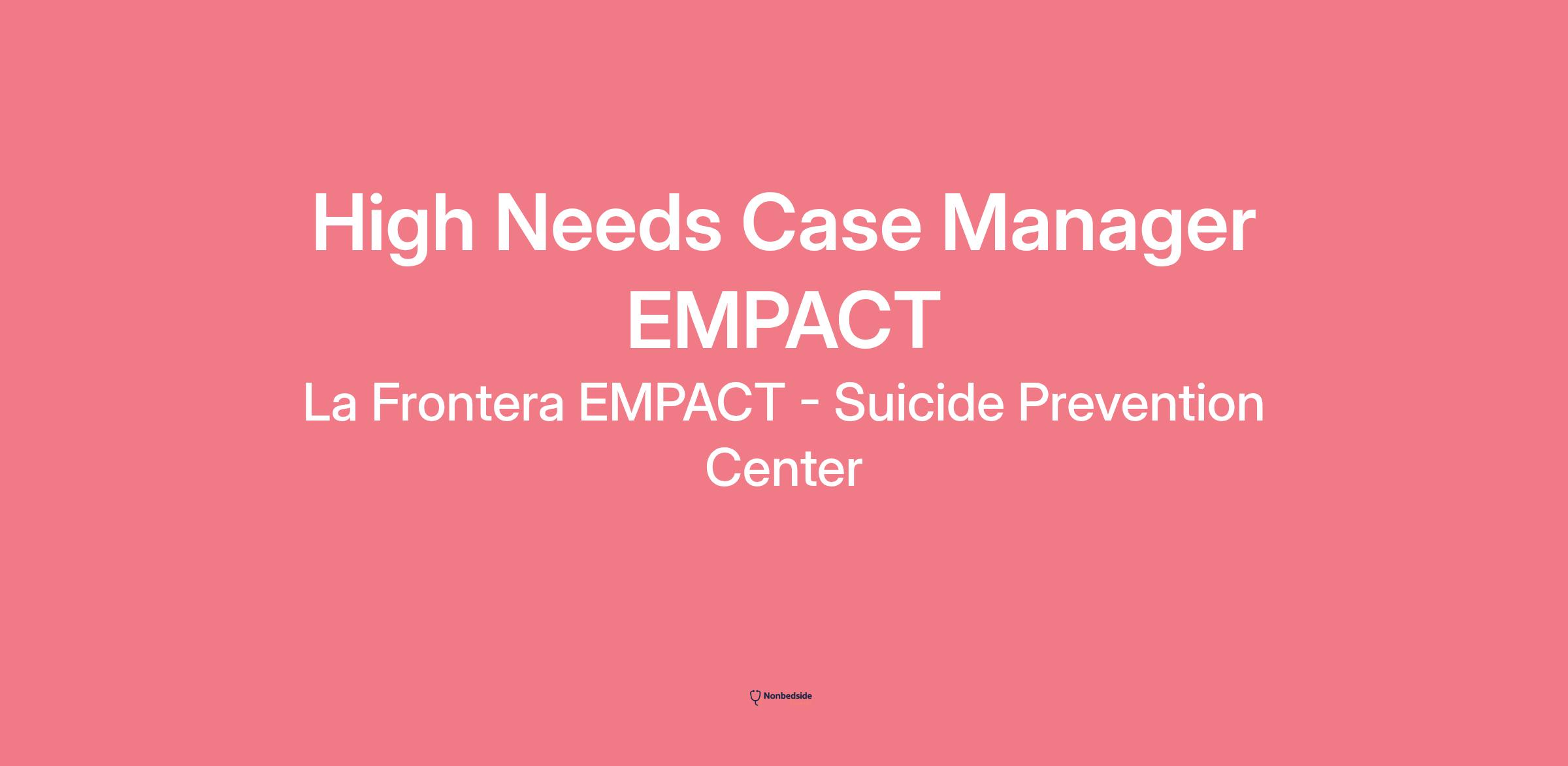 Join to apply for the High Needs Case Manager EMPACT role at La Frontera EMPACT - Suicide Prevention Center