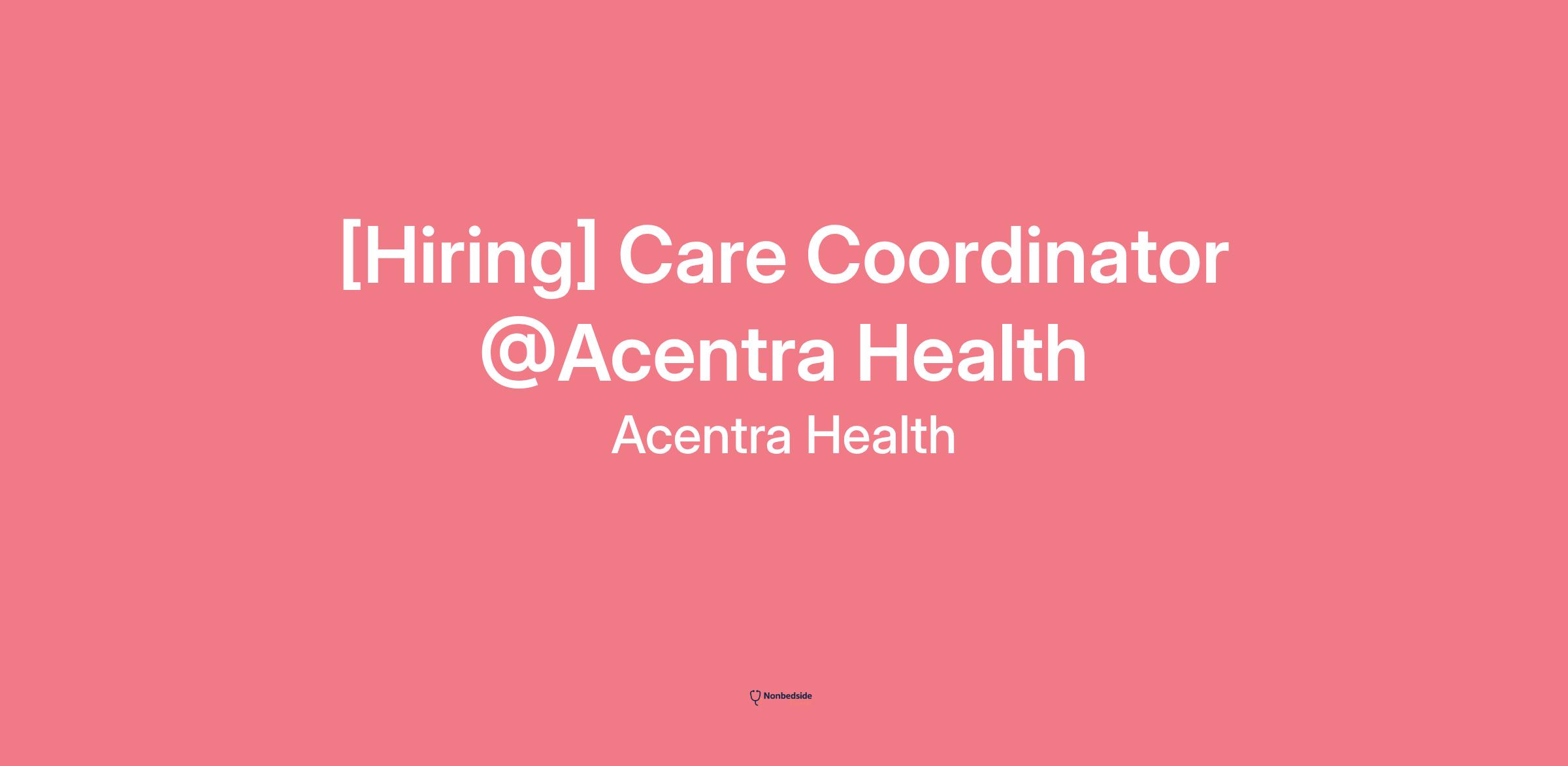 Overview Oct 30, 2025 - Acentra Health is hiring a remote Care Coordinator. Salary: USD 18.49 - 27 per hour. Location: USA.