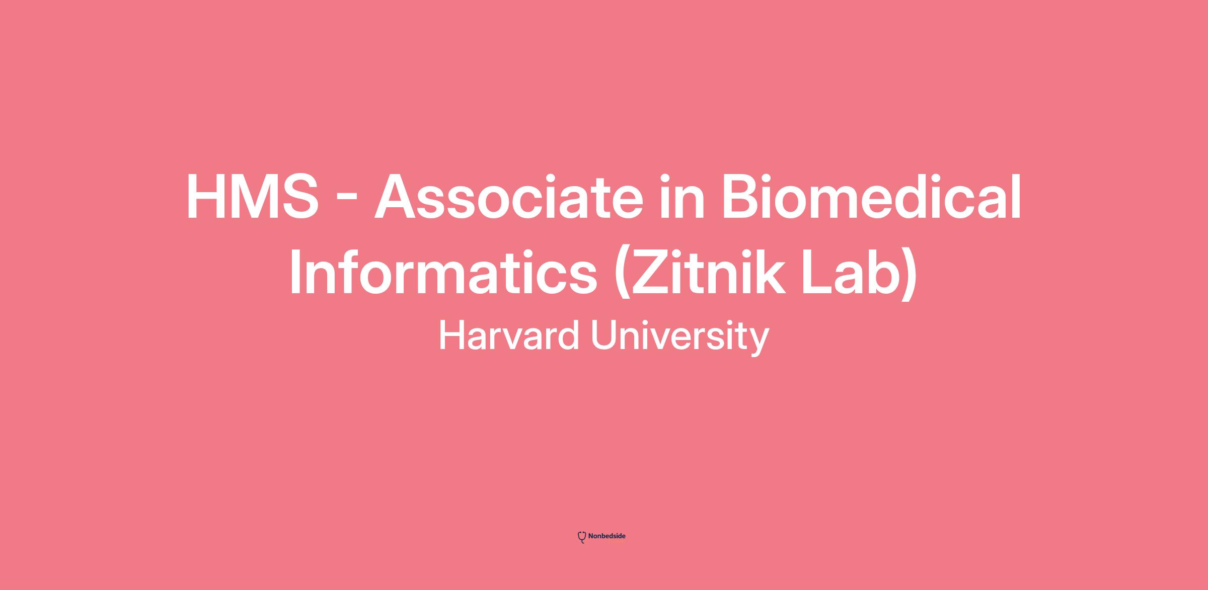 Title HMS - Associate in Biomedical Informatics (Zitnik Lab)