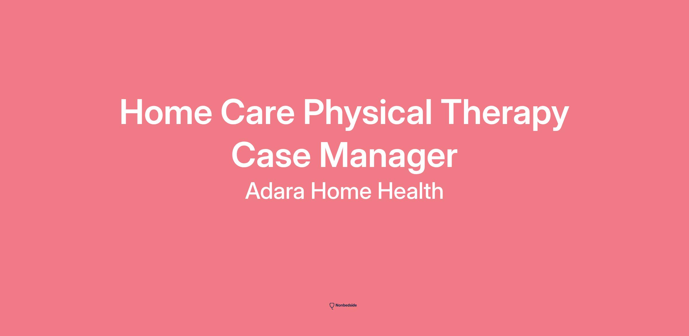 Adara Home Health is seeking a full-time Physical Therapy (PT) Case Manager to provide and oversee home health services in the Hinckley, Sandstone, Askov, Barnum, and Pine City areas. This role emphasizes flexibility, work-life balance, and individual respect.