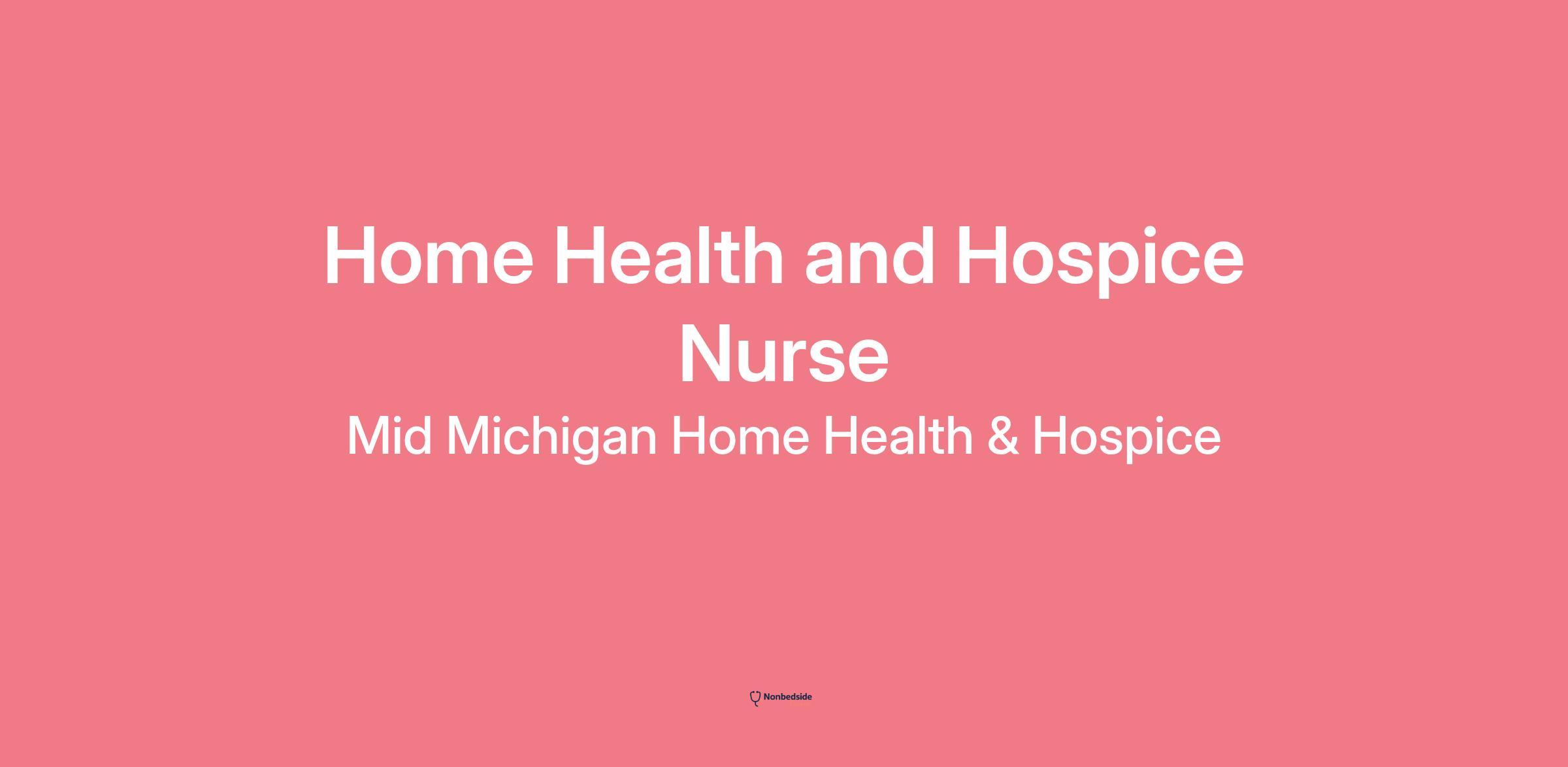 Mid Michigan Home Health & Hospice is seeking RN's for our Home Care Division. Home Care Nurses provide a multidisciplinary approach to care. Providing a full range of personalized care, focusing on chronic disease teaching and interventions, medication / pain management, wound care and IV infusion’s, in collaboration with clients physician to ensure the facilitation of the provision of best possible care. The goal is to provide patients with to the tools they need to ensure their own recovery within their own home setting. We are an Independently owned, Medicare – Certified Home care agency looking for dedicated, professional caring RN's with home care experience. We have competitive wages and benefits available.