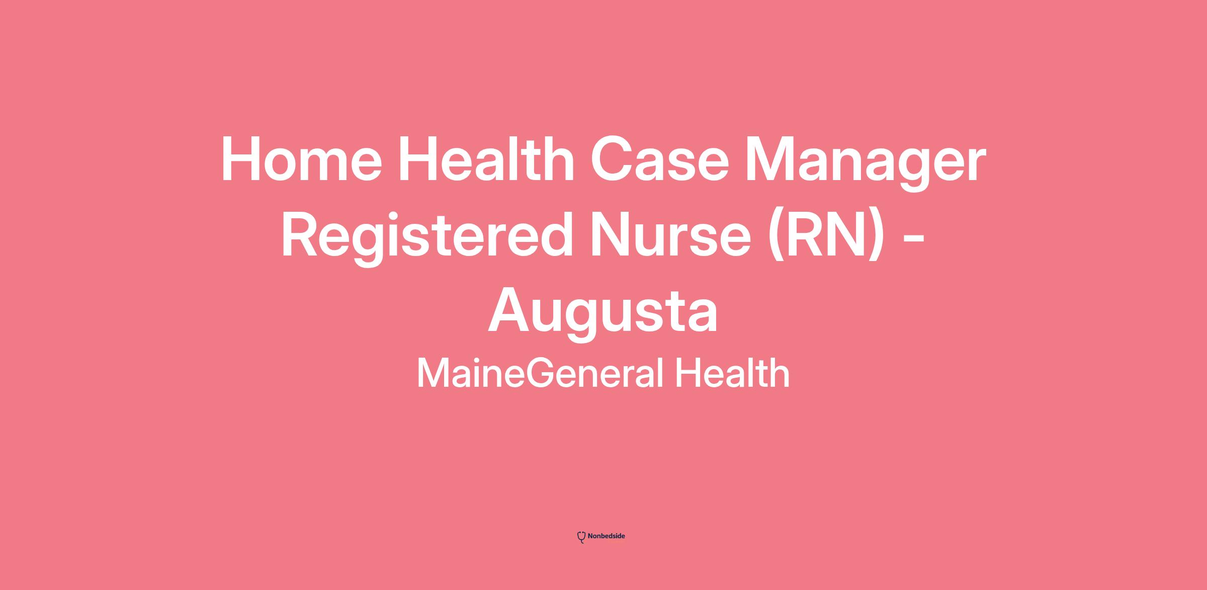 Home Health Case Manager Registered Nurse (RN) - Augusta page is loaded Home Health Case Manager Registered Nurse (RN) - Augusta Apply locations Augusta, ME time type Full time posted on Posted 7 Days Ago job requisition id R14329 Job Summary: The role of the homecare RN involves a range of responsibilities aimed at promoting health, preventing illness, and managing the care of individuals with various medical conditions. Homecare RNs play a crucial role in promoting continuity of care, allowing individuals to receive health care services in the comfort of their homes, and facilitating a more personalized and patient-centered approach to health care. Job Description: The Role: Home Health Case Manager Registered Nurse (RN)