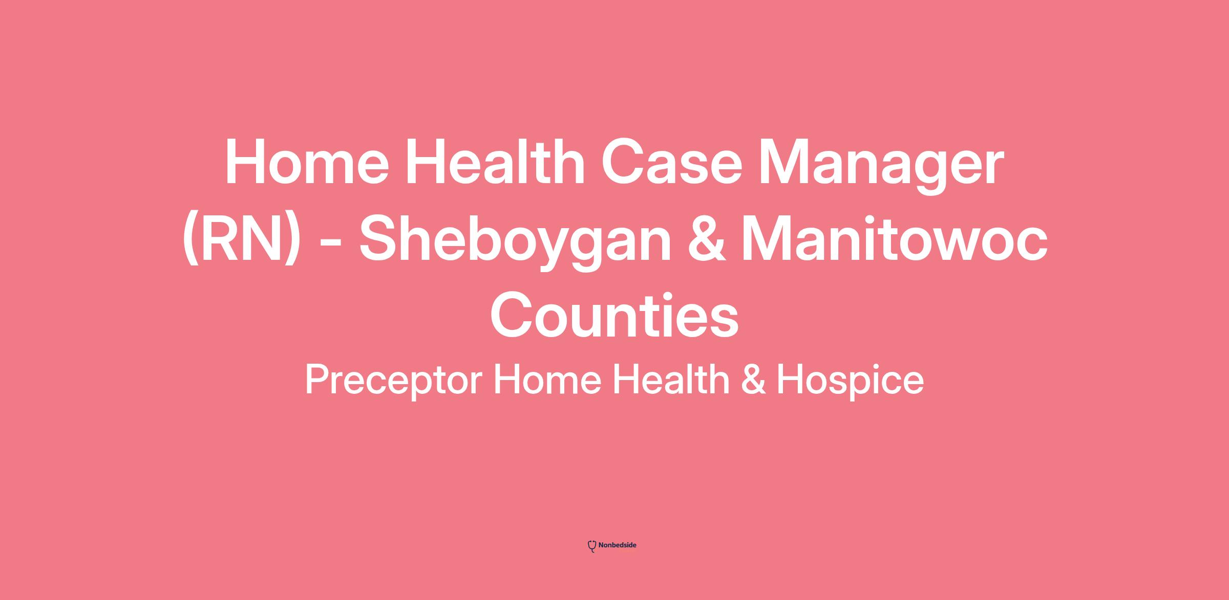 Overview SIGN-ON BONUS OFFERED!!!! We are seeking a Home Health RN Case Manager to provide care in Sheboygan and Manitowoc Counties. At Preceptor Home Health and Hospice, we embrace an atmosphere of caring, belonging, and trust. You will enjoy meaningful connections that come from this culture, including with your patients and their families, each other, and the communities we serve. Preceptor strives to provide high quality care through our multifaceted programs. It is truly all about helping people and allowing you to build a meaningful career with us!