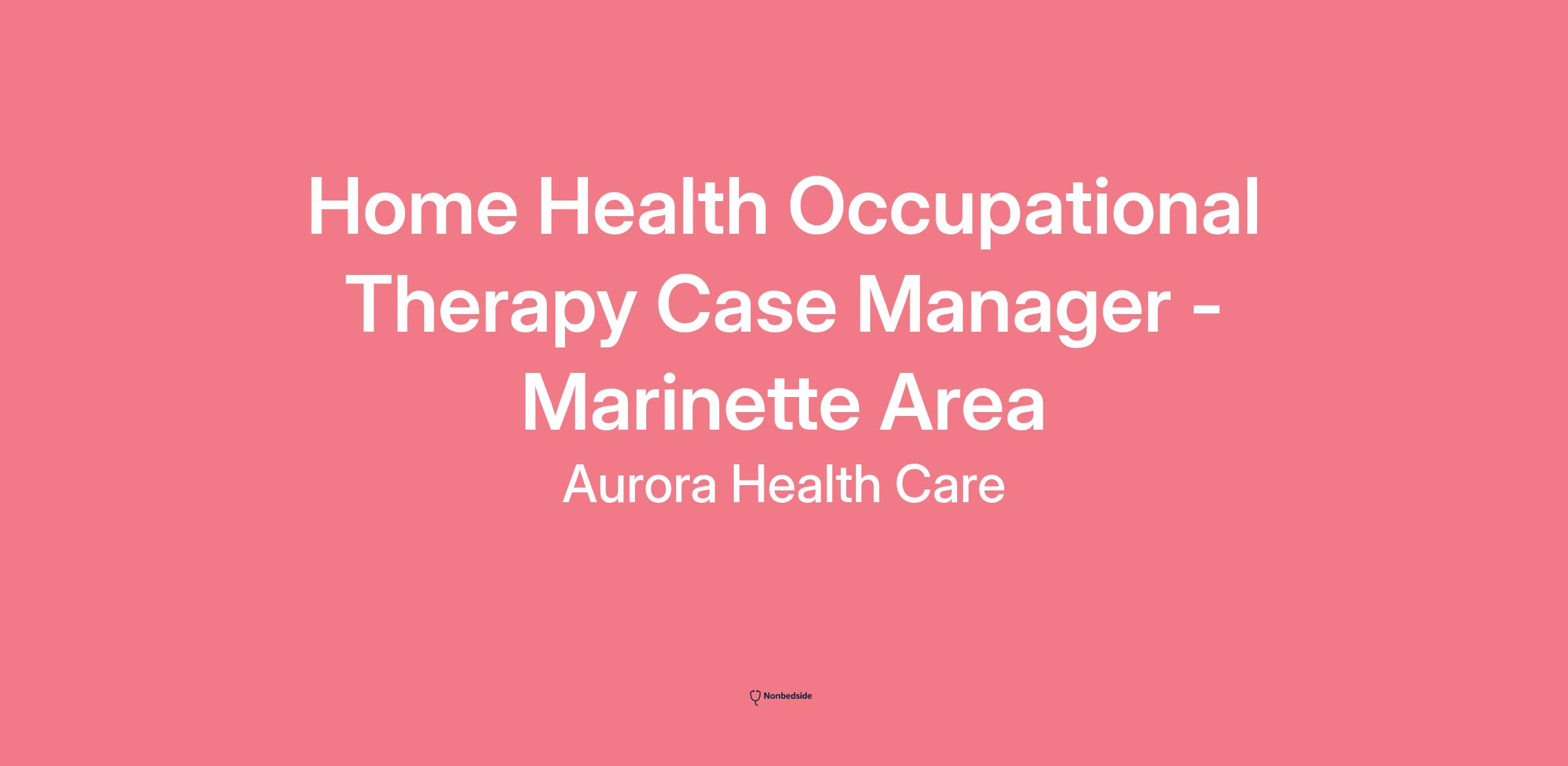 Join to apply for the Home Health Occupational Therapy Case Manager - Marinette Area role at Aurora Health Care .