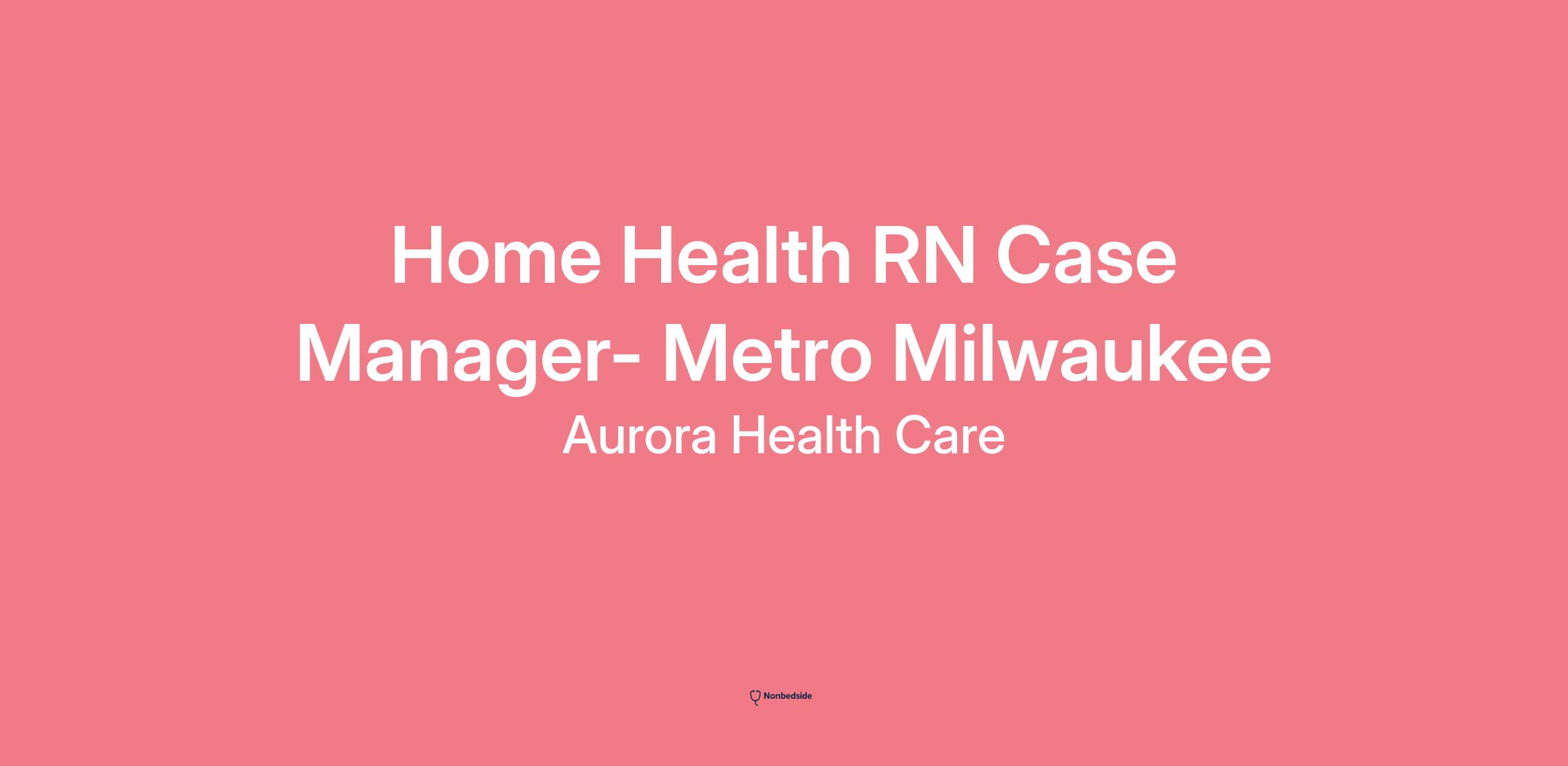 Join to apply for the Home Health RN Case Manager- Metro Milwaukee role at Aurora Health Care