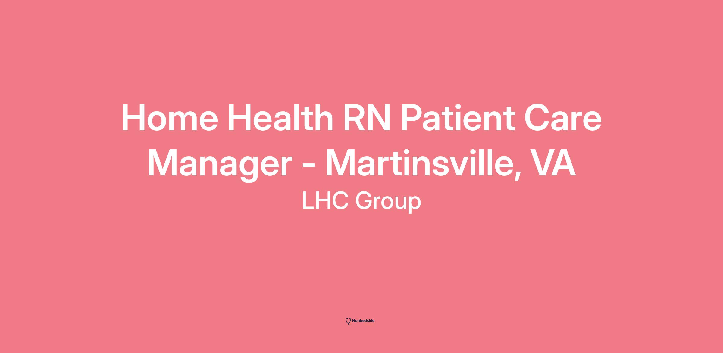 Overview We are hiring a Full Time Patient Care Manager with Home Health experience to join our team in Martinsville, VA!
