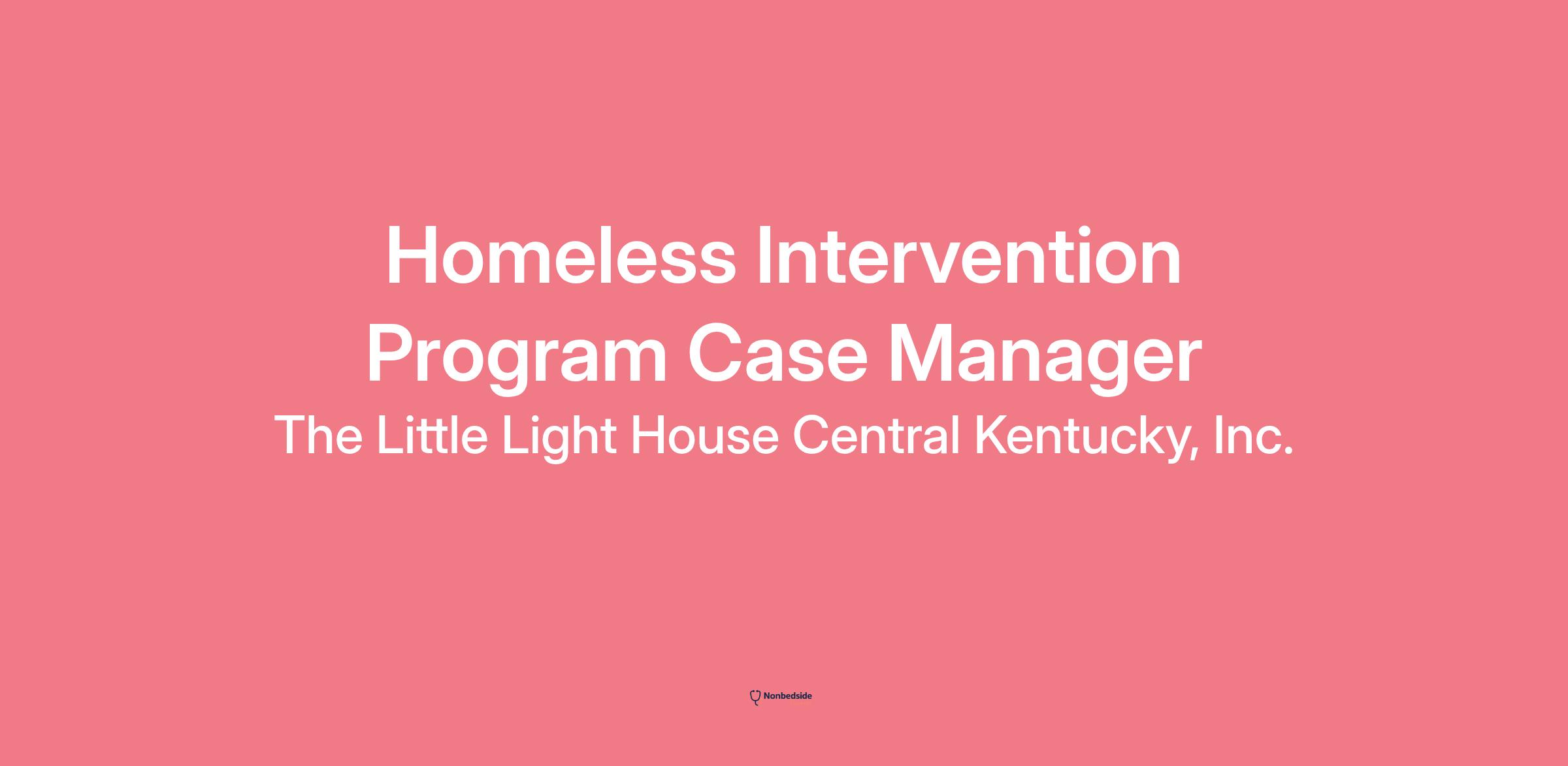 Overview The Lexington Rescue Mission (LRM) is recruiting applicants for the Homeless Intervention Program (HIP) Case Manager. LRM is a non-profit faith-based organization that strives to meet the physical, emotional and spiritual needs of hurting people in the greater Lexington area. For more information about our organization, please visit our website at www.lexingtonrescue.org .