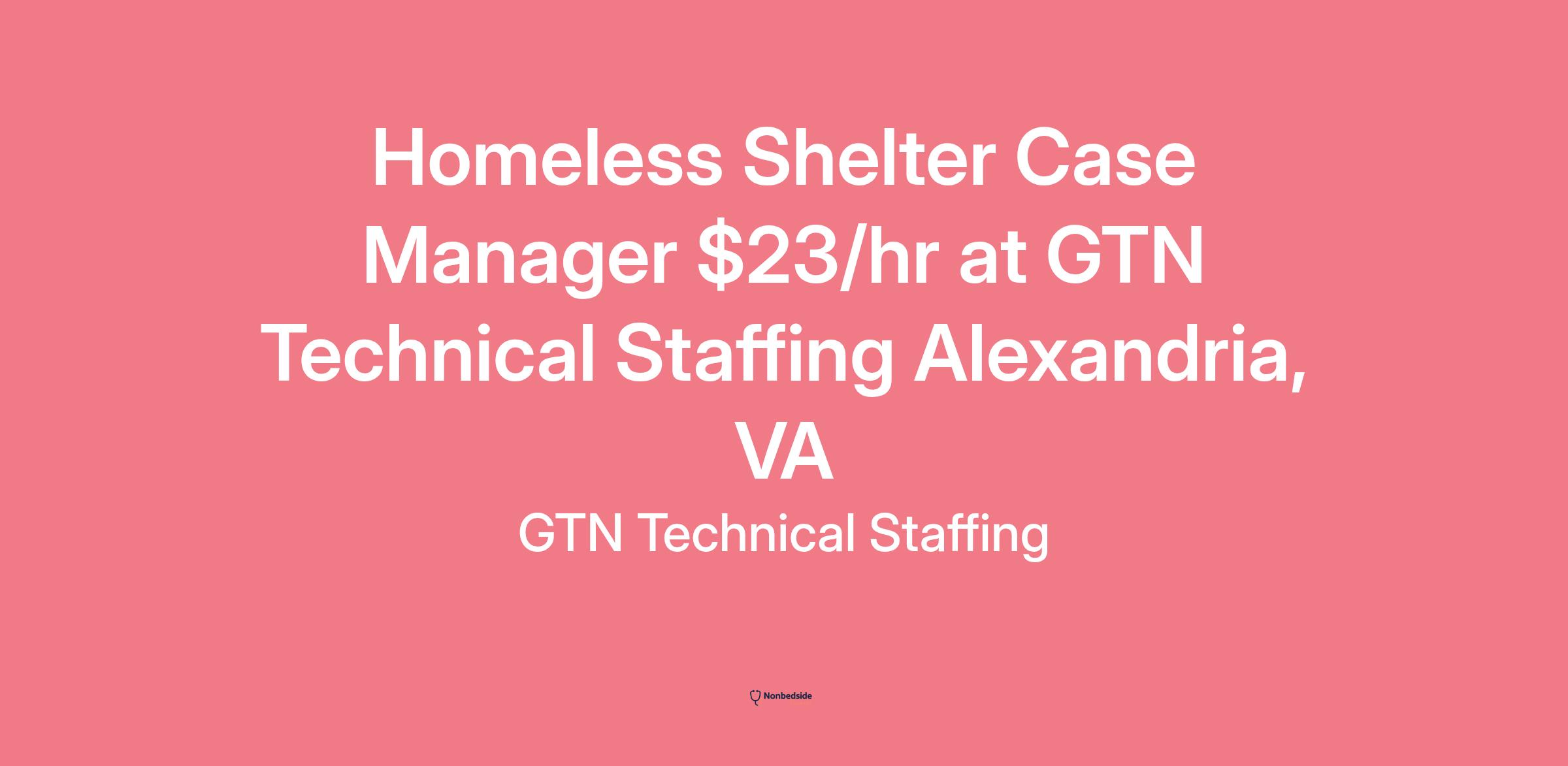 Homeless Shelter Case Manager $23/hr job at GTN Technical Staffing. Alexandria, VA.